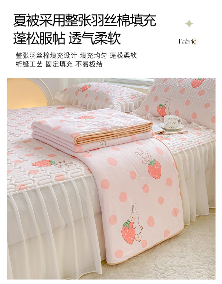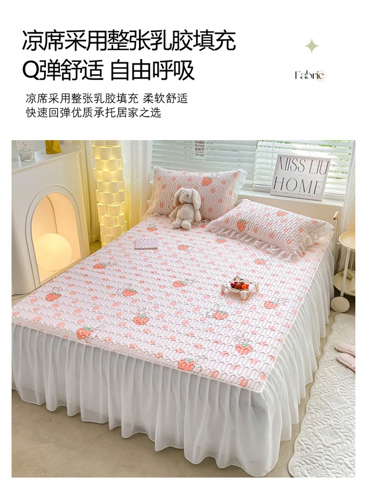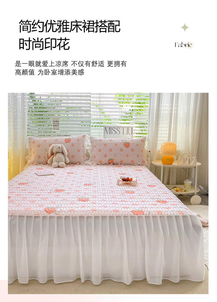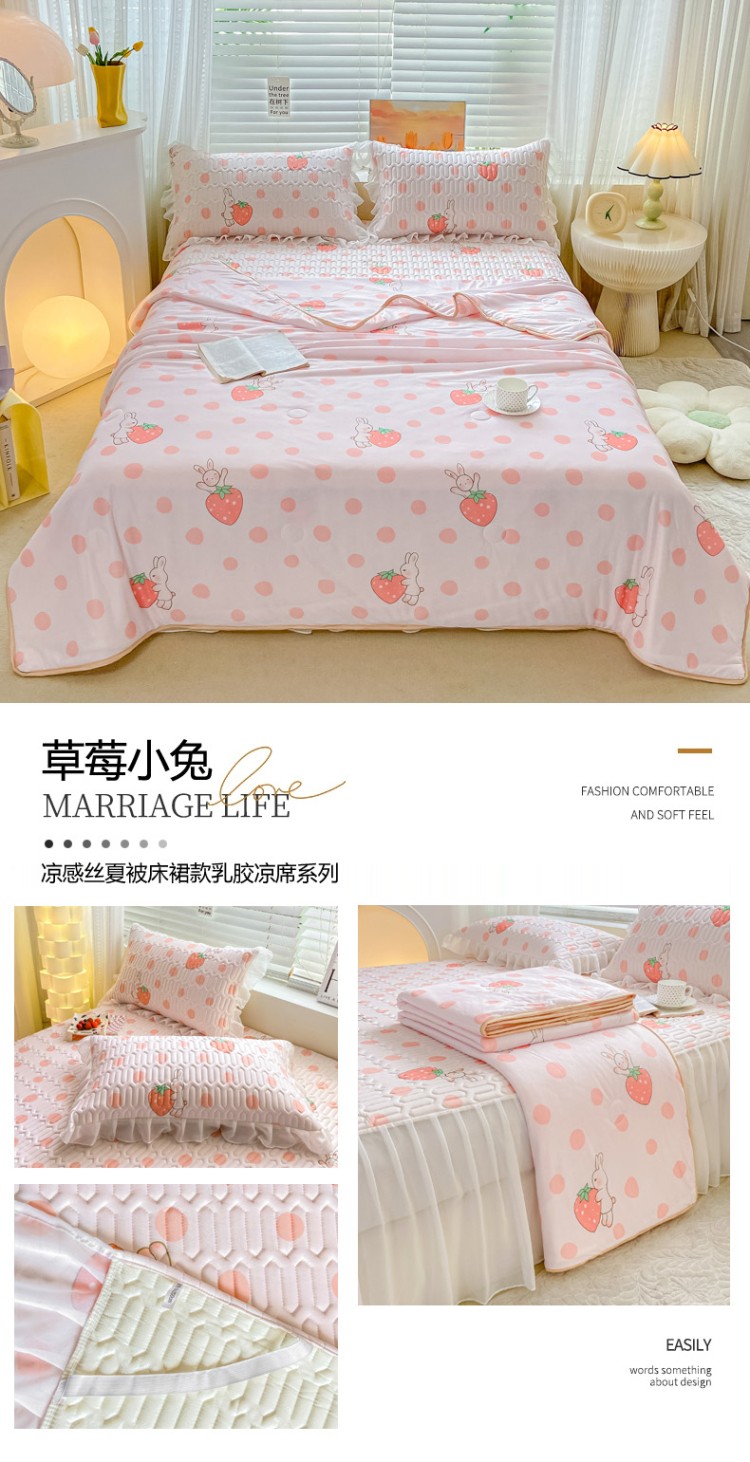 慕澄2023新款小版床裙款雪纺乳胶凉席夏被四件套 草莓小兔