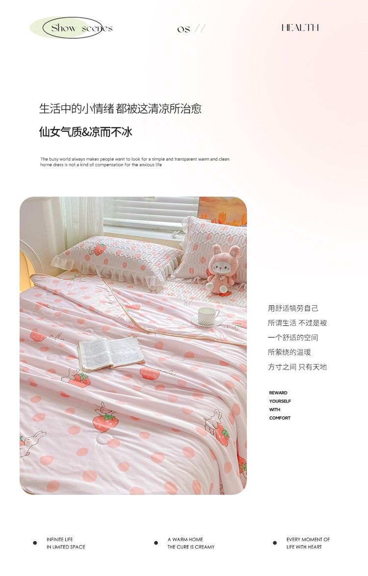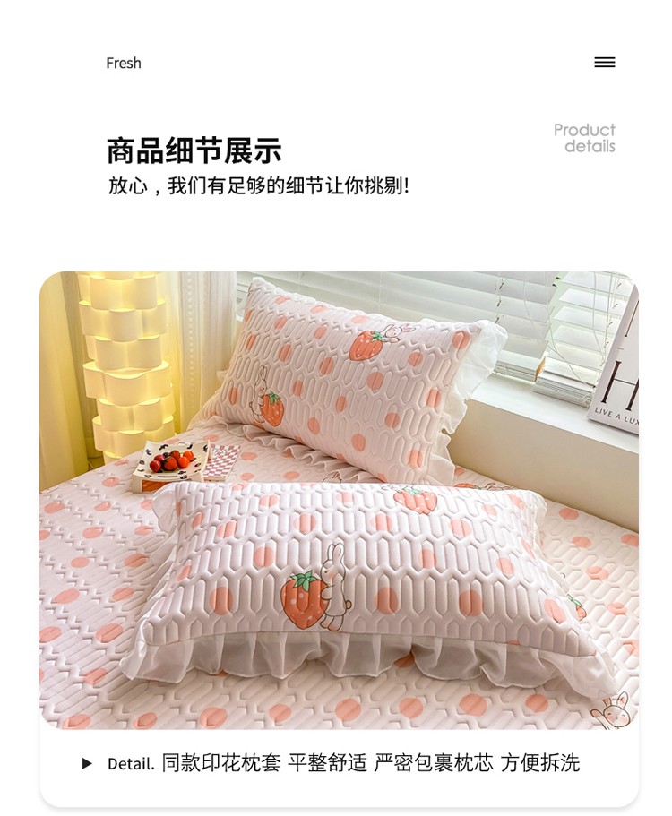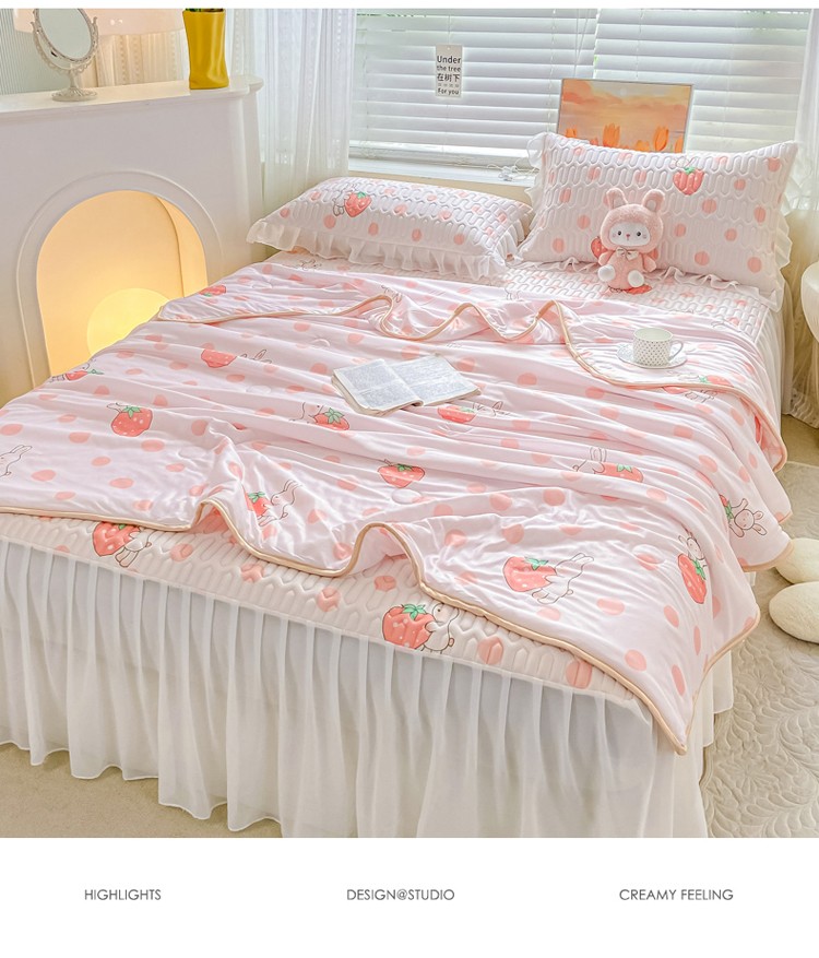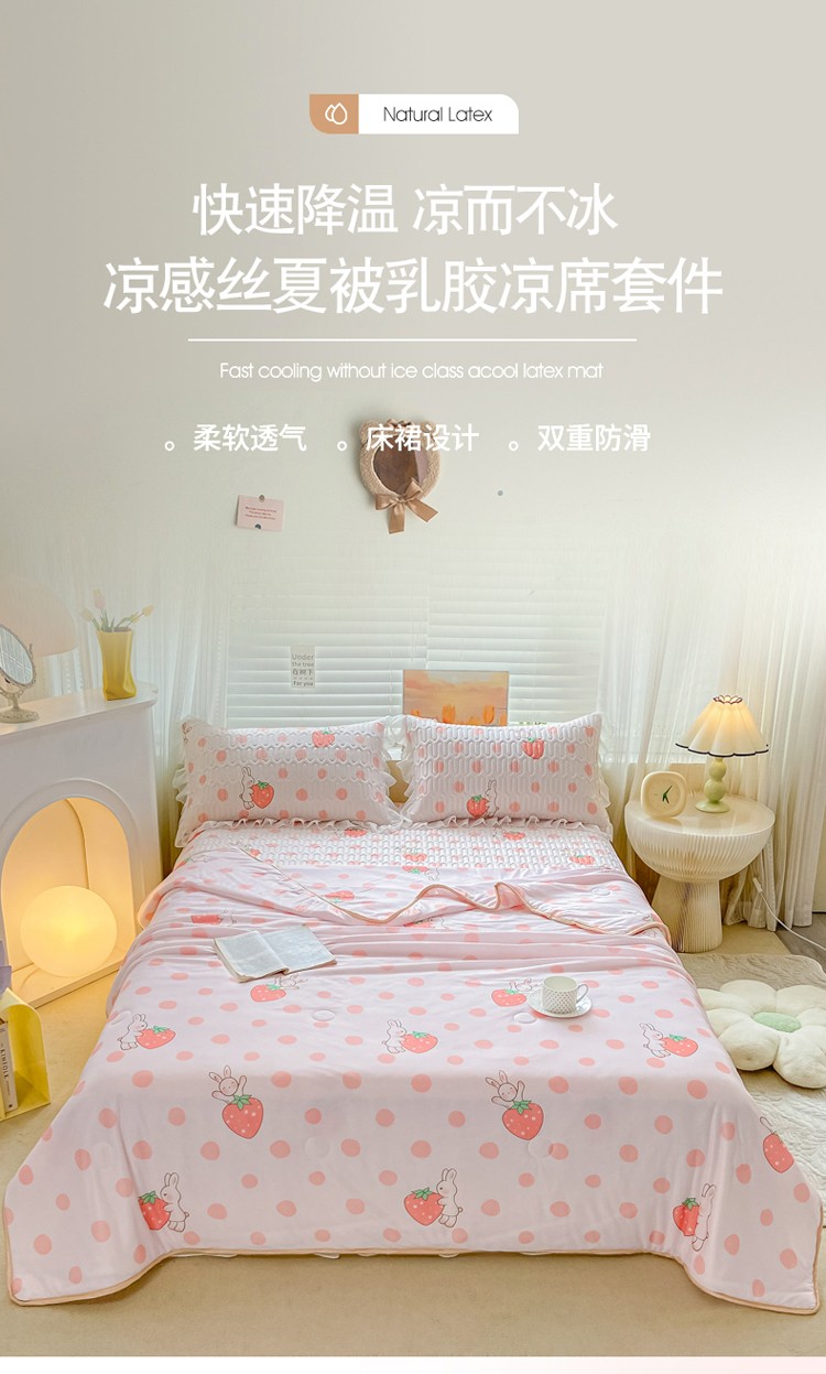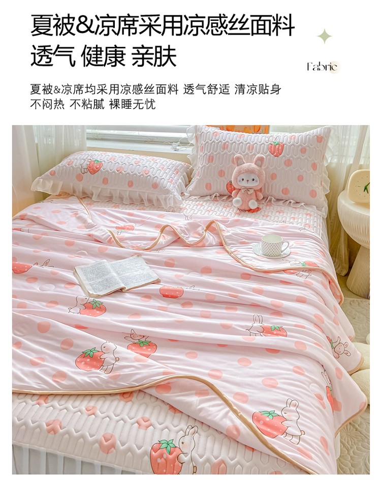 慕澄2023新款小版床裙款雪纺乳胶凉席夏被四件套 草莓小兔