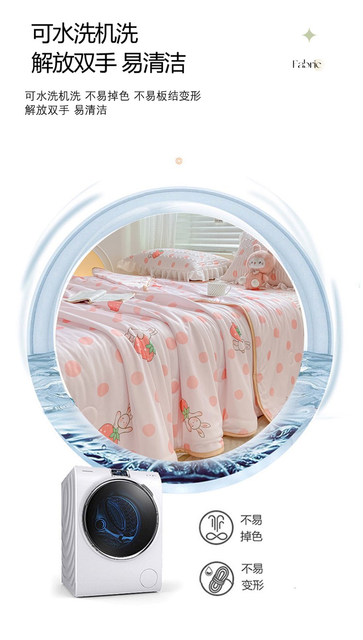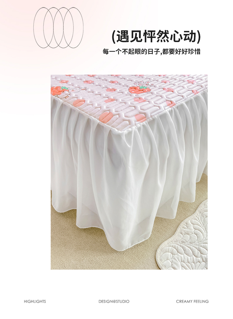 • 91家纺网 家纺一手货源 找家纺 慕澄2023新款小版床裙款雪纺乳胶凉席夏被四件套 草莓小兔