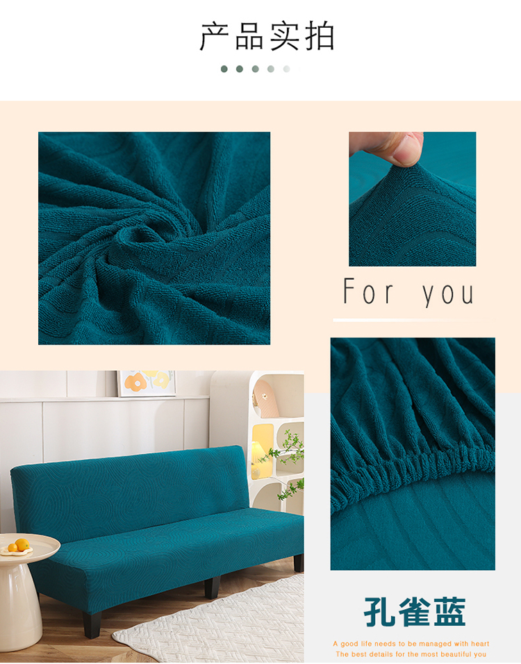 千彤沙发垫 2023新款无扶手沙发床套-时光年轮系列 孔雀蓝