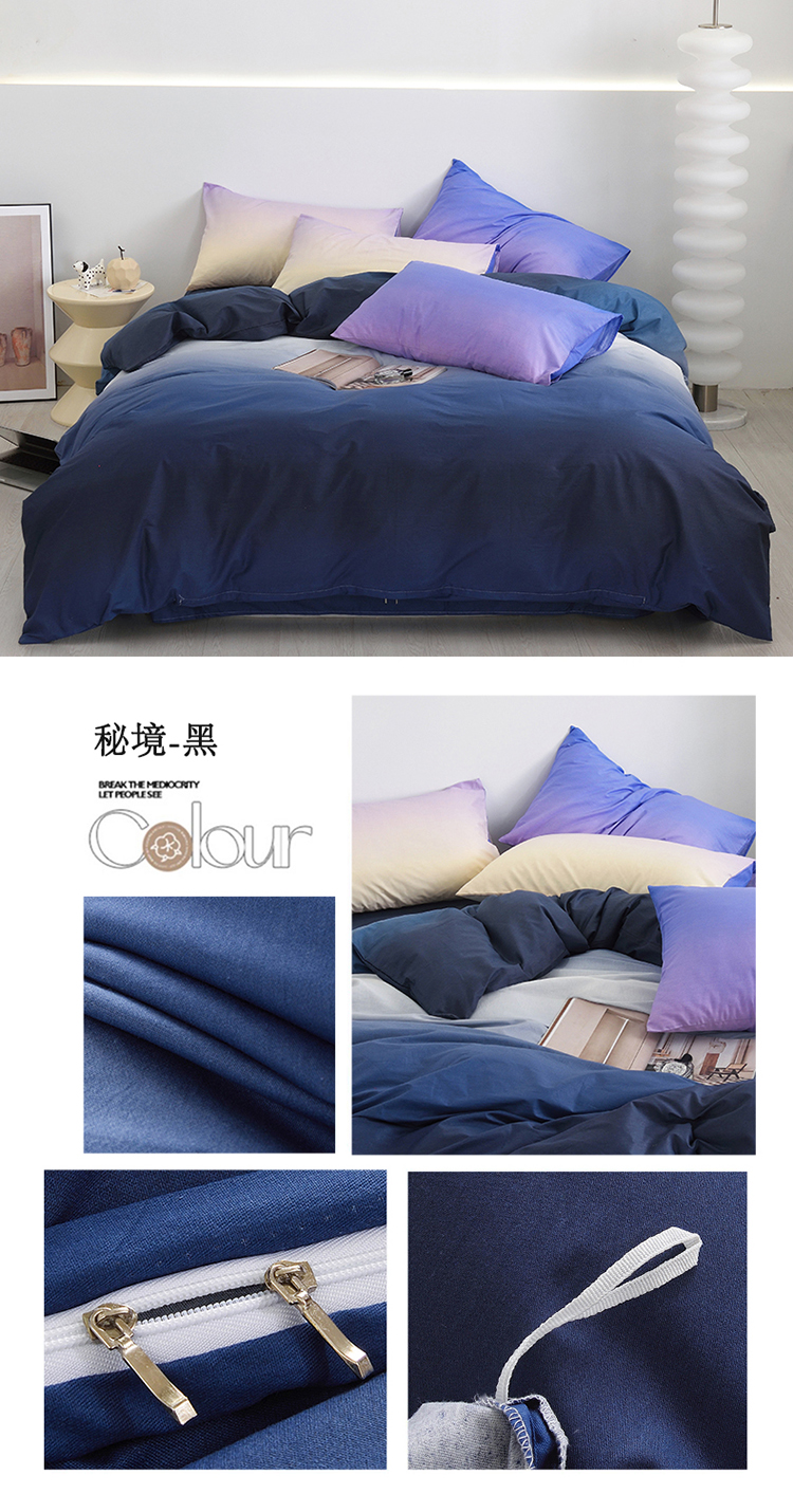 商品名称:启优家纺2023新款全棉13370渐变色四件套 秘境-黑