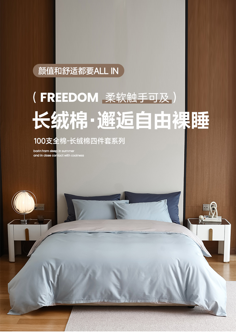 当前位置: 91家纺网 > 商品网购 > 床品套件 > 四件套 > 长绒棉四件套 > 寐眠-豫皖 2023新款100支全棉长绒棉四件套 月光蓝-星辰灰