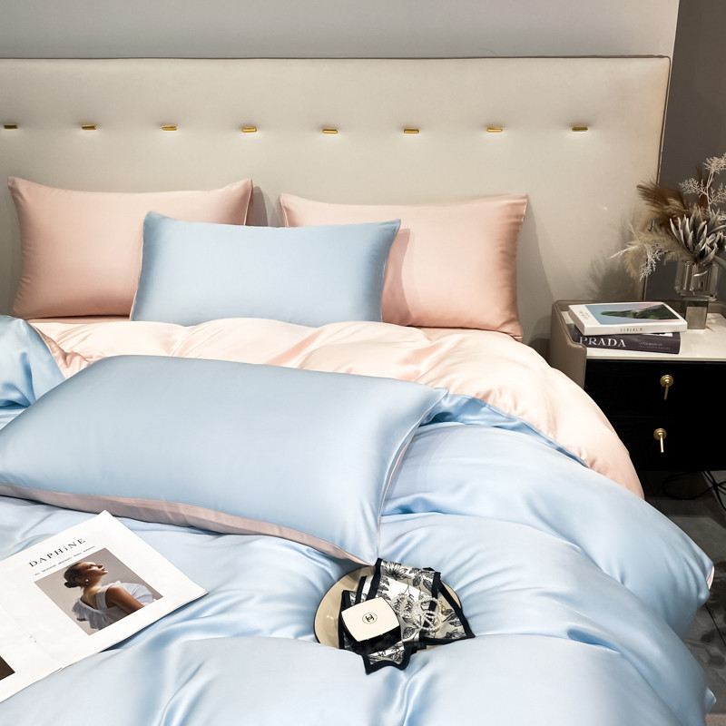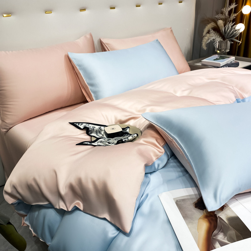 当前位置: 91家纺网 > 商品网购 > 床品套件 > 四件套 > 水洗真丝四件套 > 盼季 2023新款夏季水洗冰丝四件套丝滑裸睡高克重真丝天丝宿舍三件套 天空蓝+粉