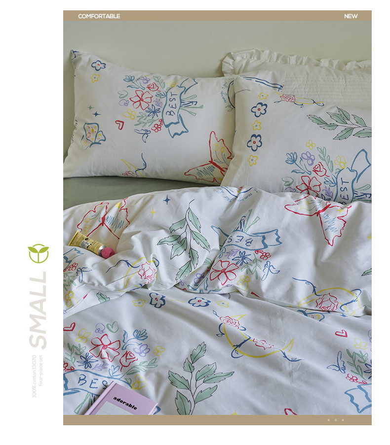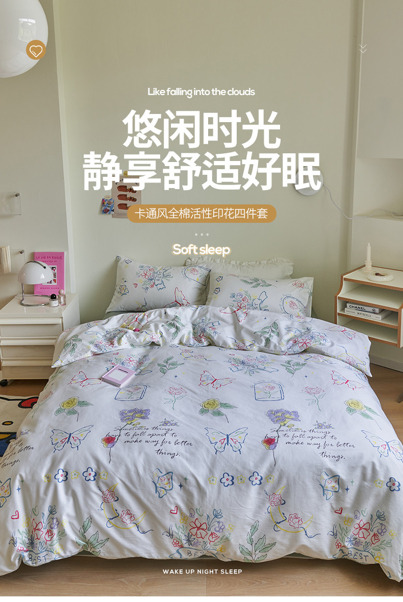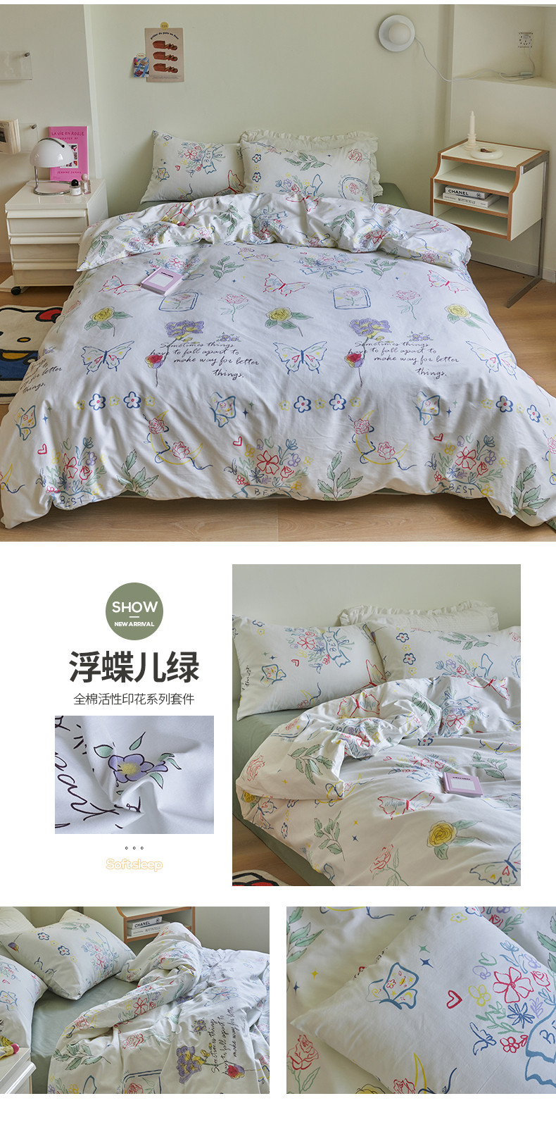 当前位置: 91家纺网 > 商品网购 > 床品套件 > 四件套 > 全棉普通四件套 > 窝米 2023新款13370全棉卡通风系列四件套 浮蝶儿绿