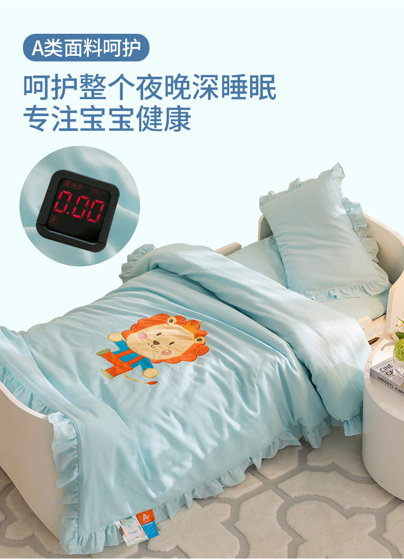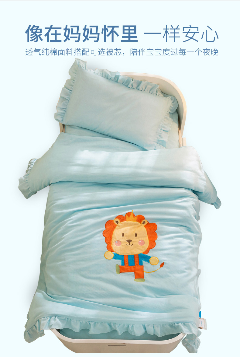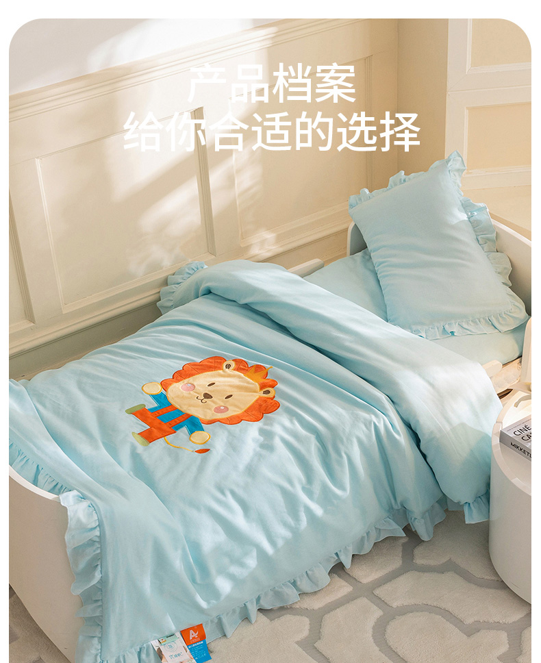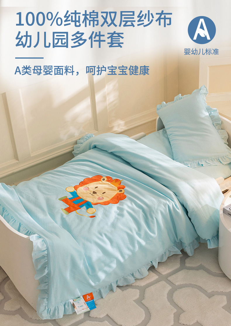当前位置: 91家纺网 > 商品网购 > 床品套件 > 三件套 > 喜多兔 2023新款纯棉双层纱绣花幼儿园三件套 蓝色萌小狮