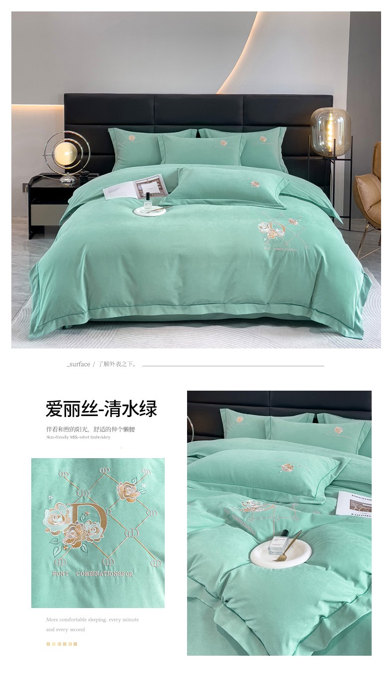 (总)金米诺 2024新款磨毛四件套刺绣系列,豆沙,翡翠绿,抹茶绿,浅姜黄,深蓝,烟灰,烟灰紫