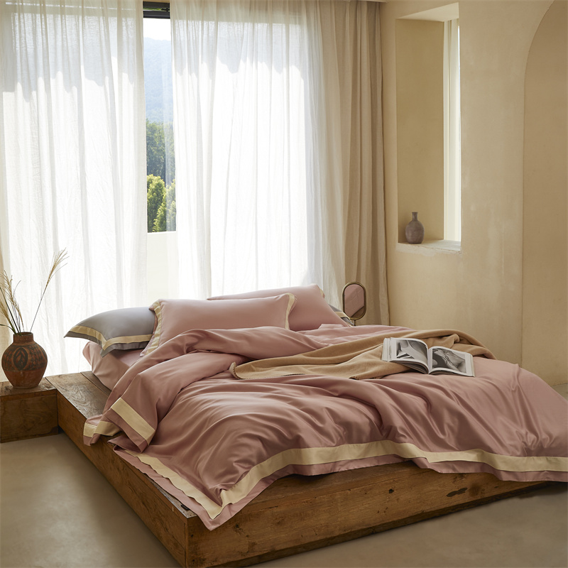 嘉恋 2023新款100支全棉提花镂空四件套送包装西柚粉,西柚粉