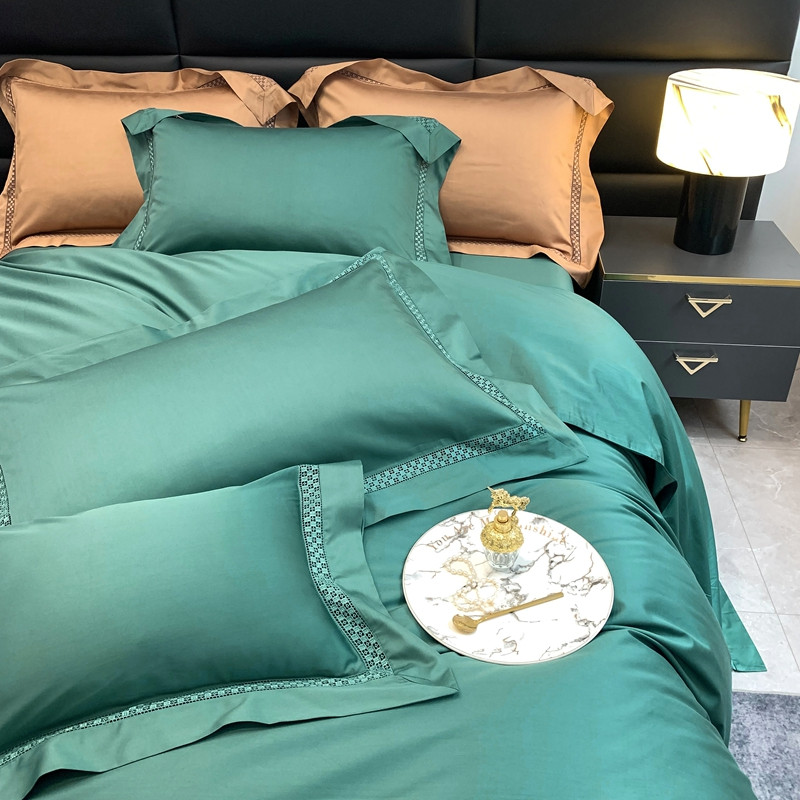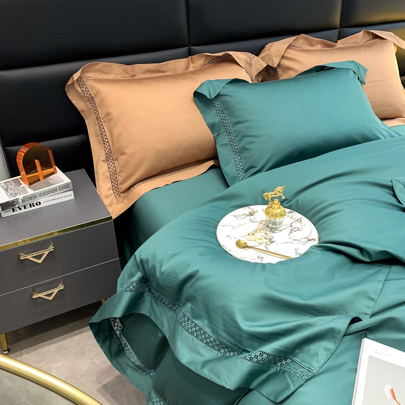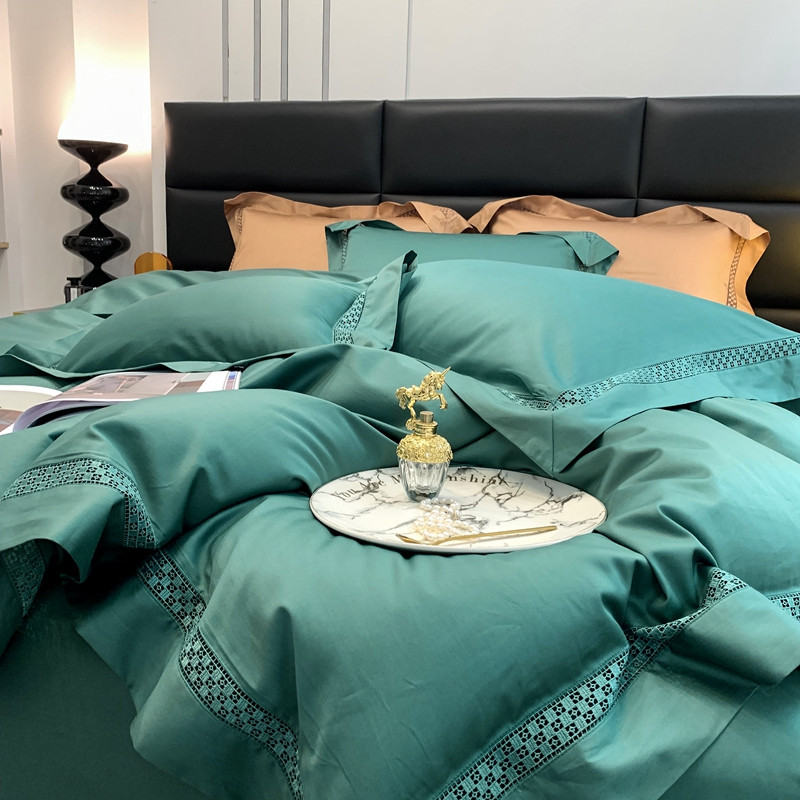 商品名称:顾家家居 2023新款100支全棉大镂空边四件套 莫奈绿