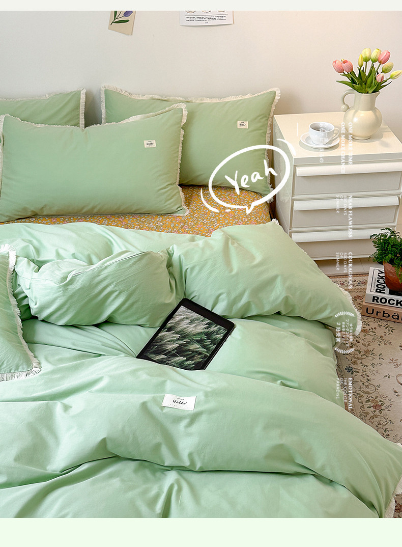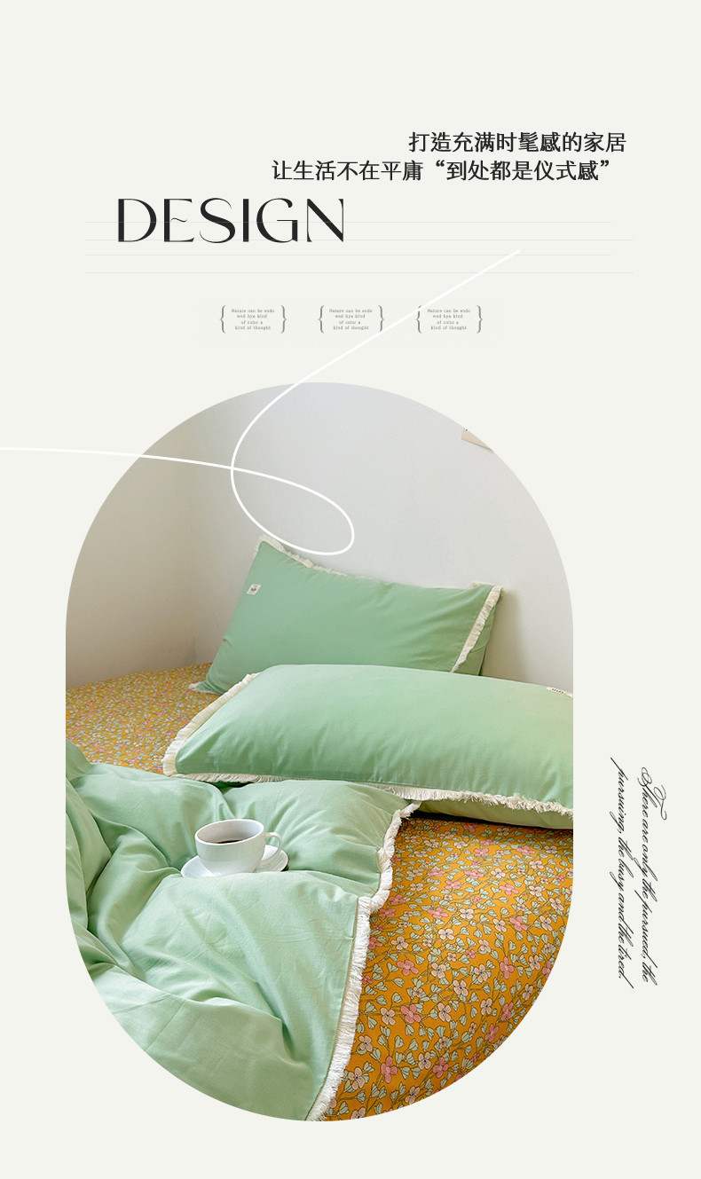 婳庭 2023新款全棉印花流苏四件套 橘彩
