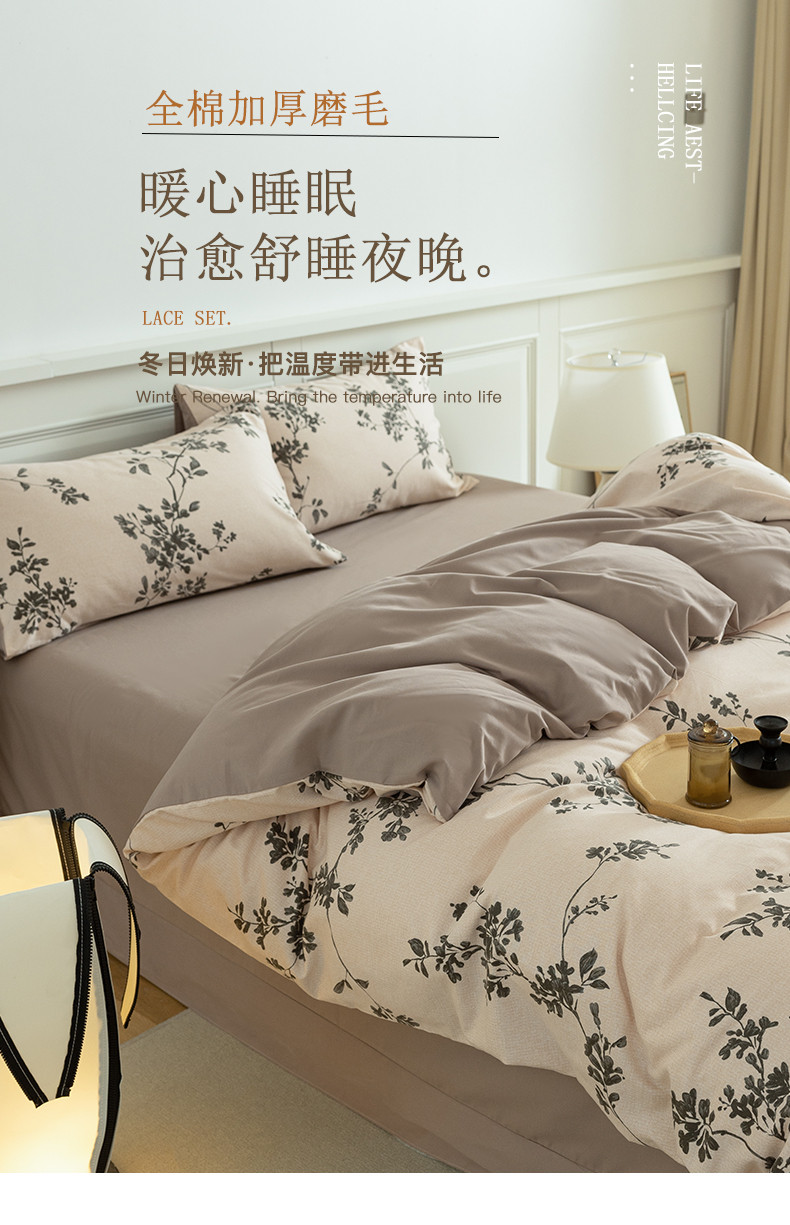 商品名称:绫韵家纺 2023秋冬新款全棉生态磨毛加厚纯棉磨毛四件套系列 敏玖米