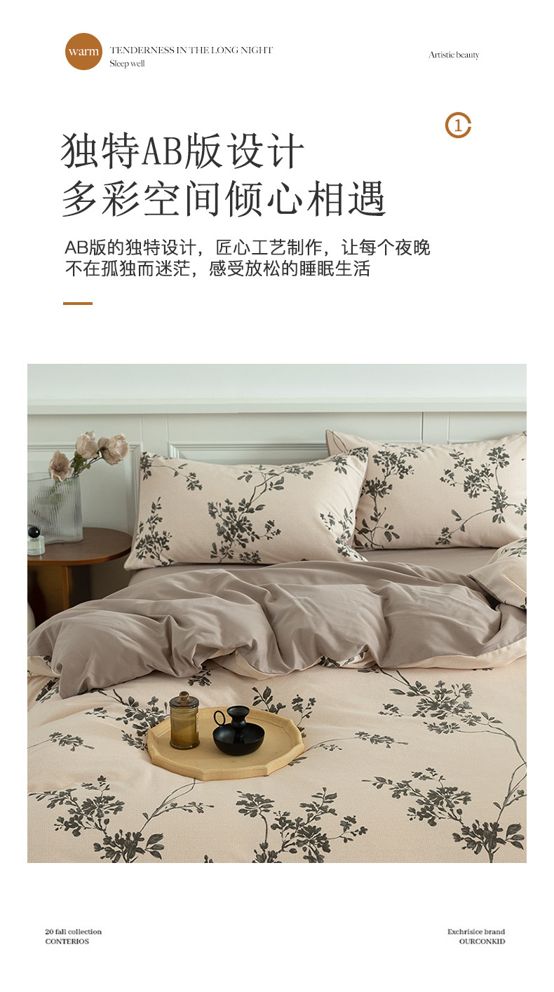 绫韵家纺 2023秋冬新款全棉生态磨毛加厚纯棉磨毛四件套系列 敏玖米