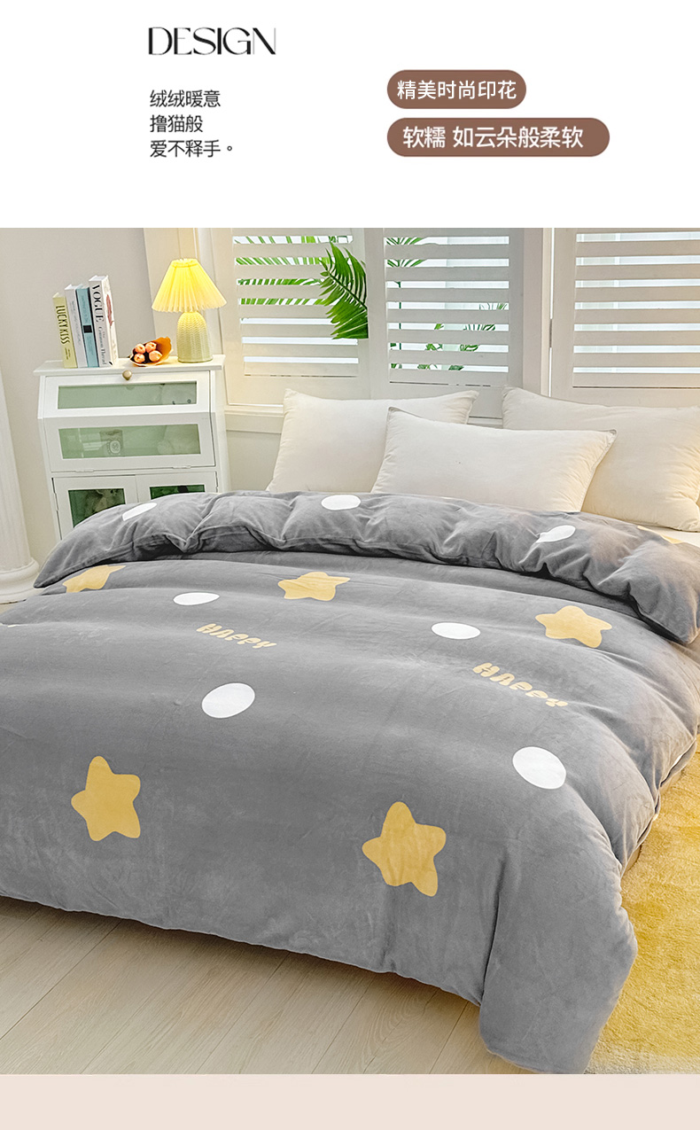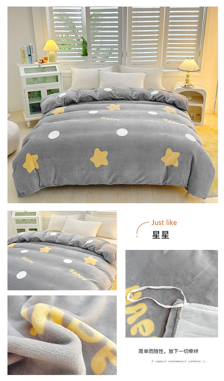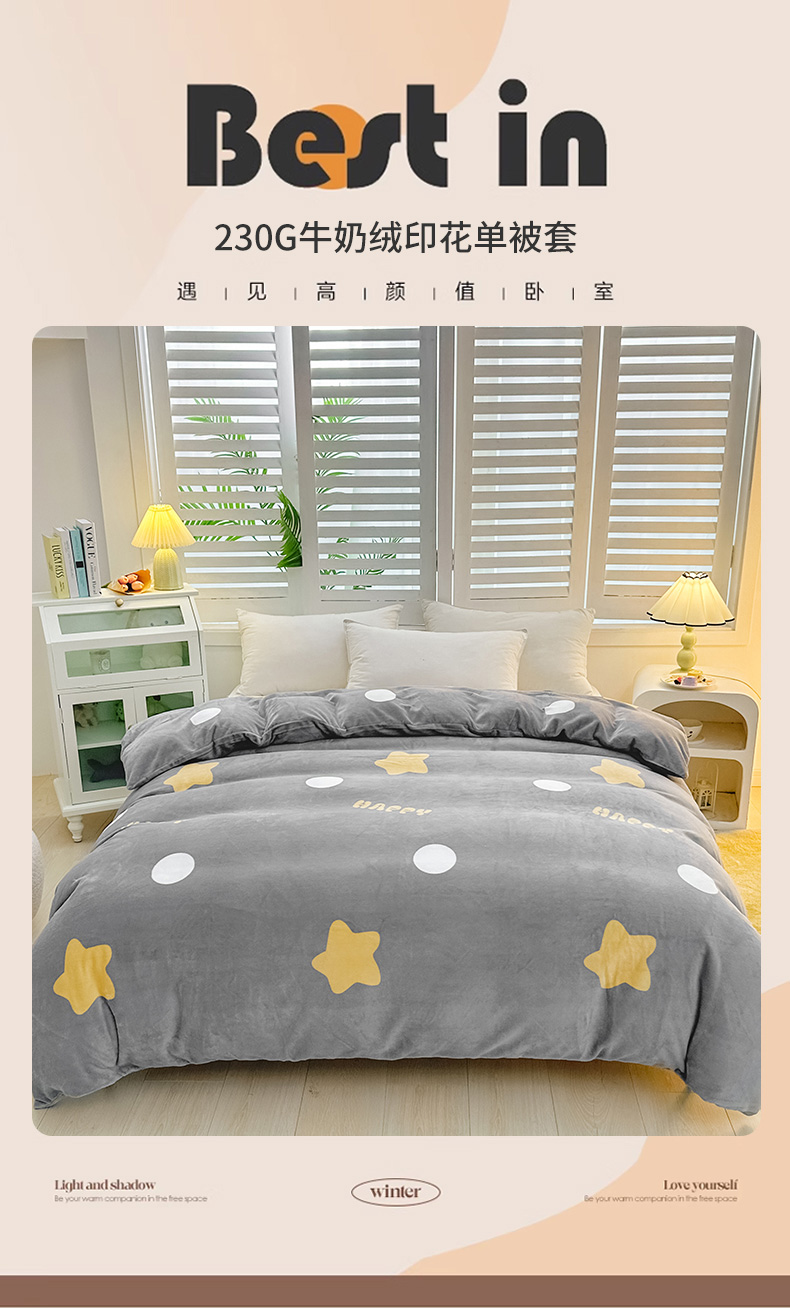 • 91家纺网 家纺一手货源 找家纺 新款230克高克重印花牛奶绒单被套定制定做尺寸 星星