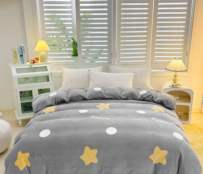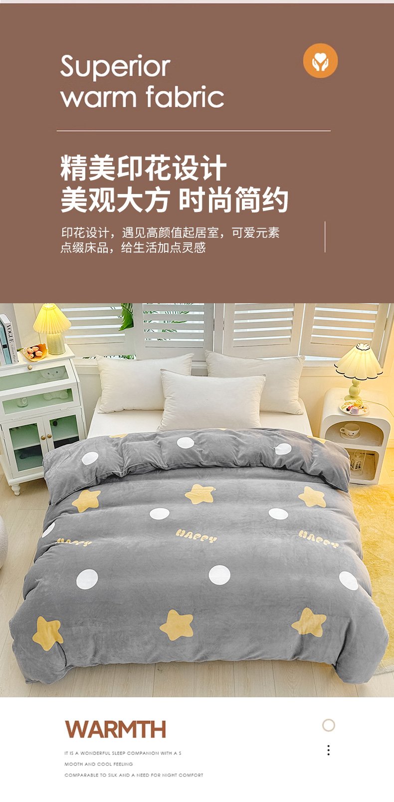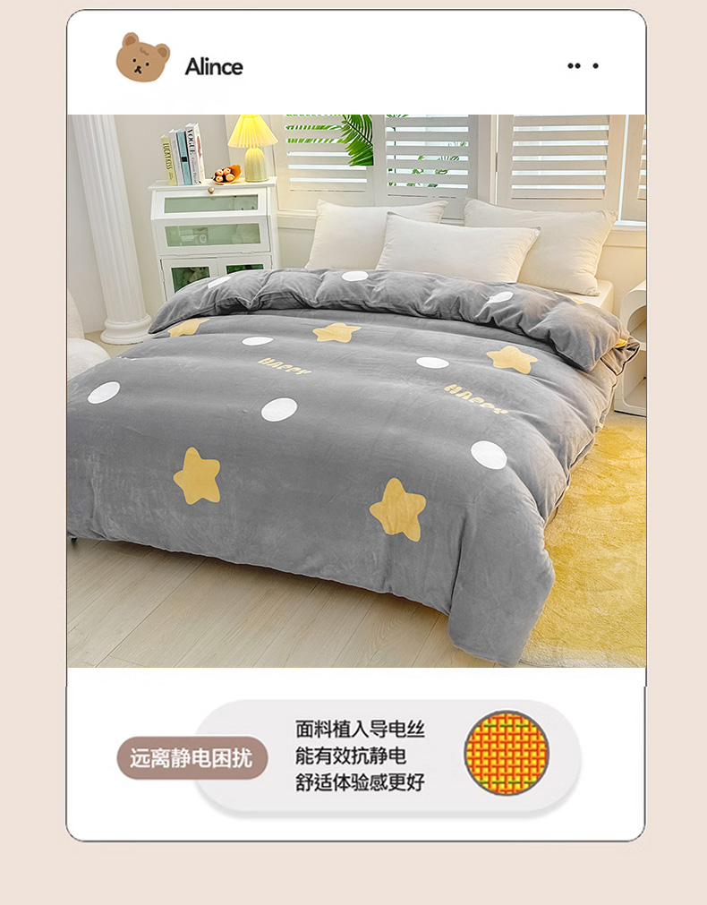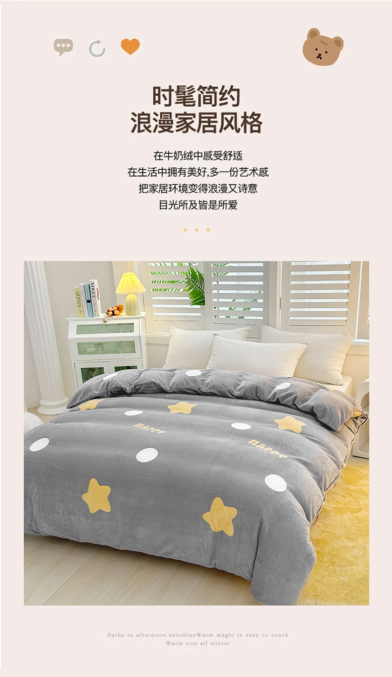 • 91家纺网 家纺一手货源 找家纺 新款230克高克重印花牛奶绒单被套定制定做尺寸 星星