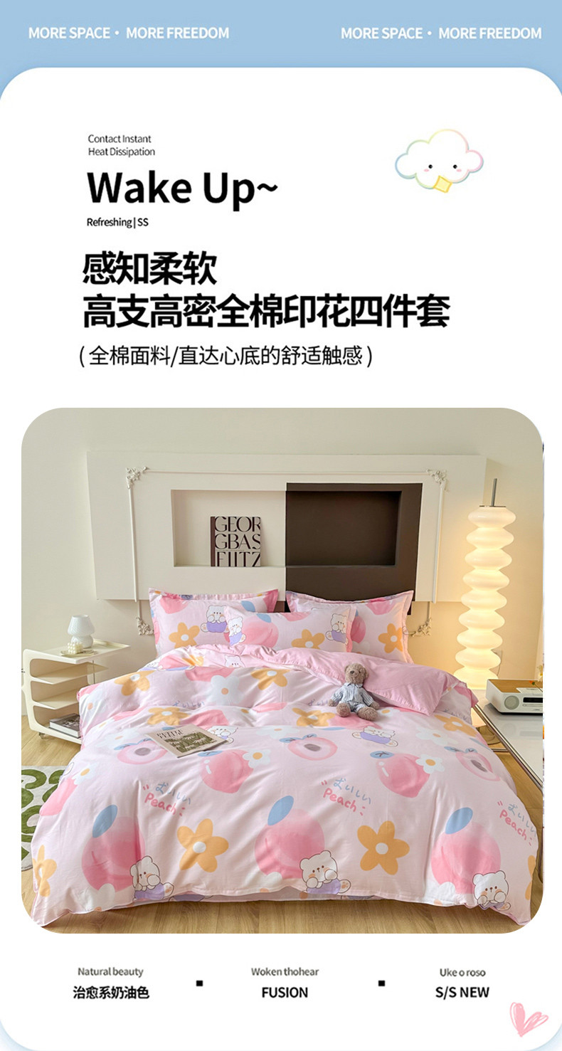 当前位置: 91家纺网 > 商品网购 > 床品套件 > 四件套 > 全棉普通四件套 > 帛织澜 12868全棉喷气印花四件套-蜜桃桃