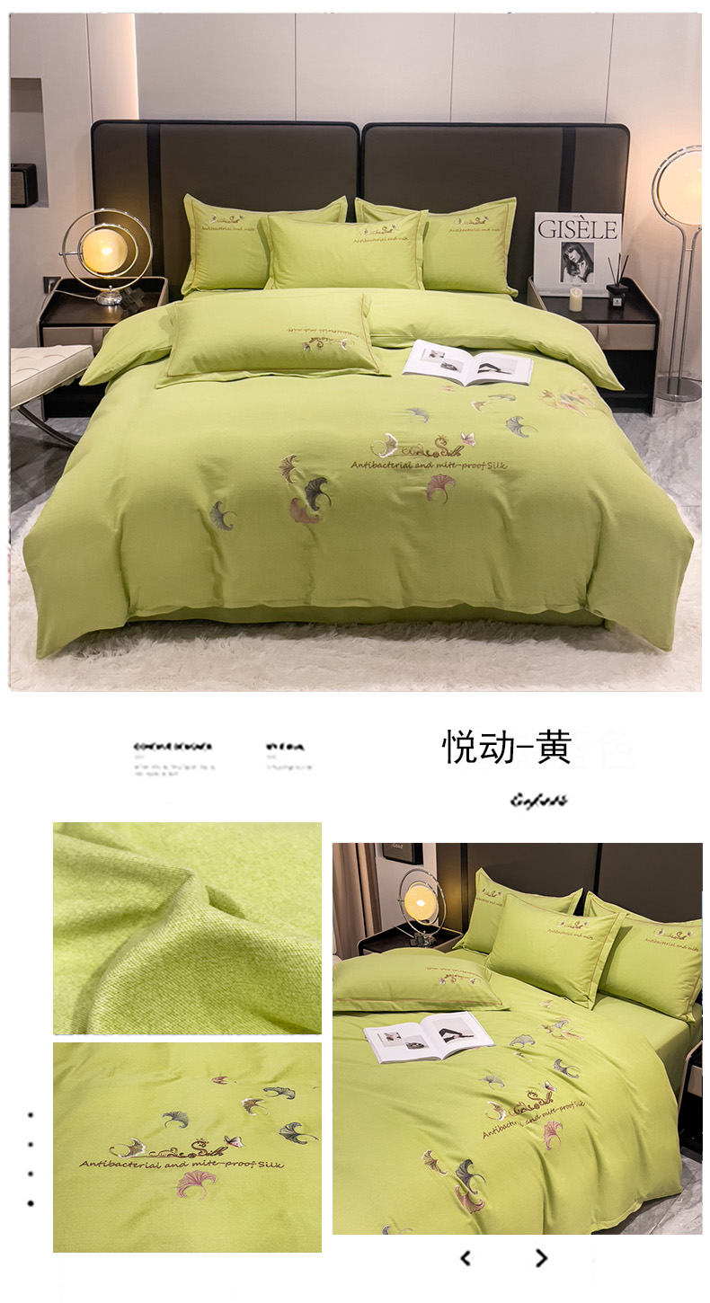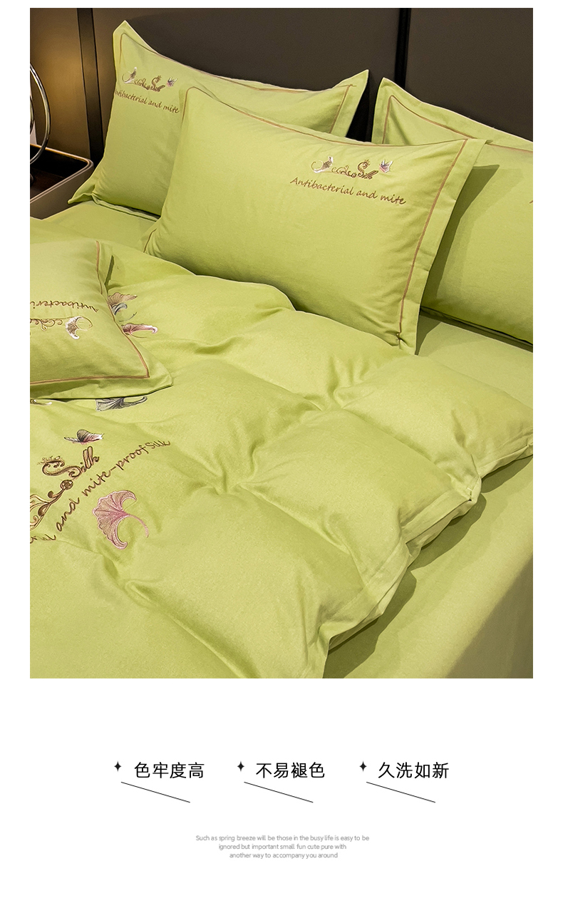 商品名称:云锦2023新款全棉磨毛绣花四件套系列 悦动牛油果绿