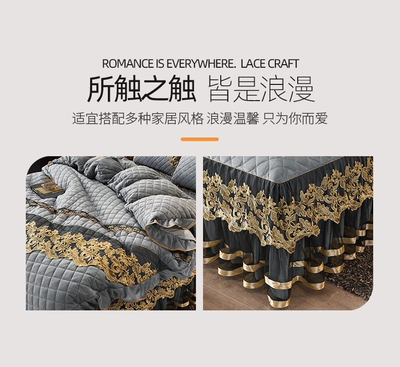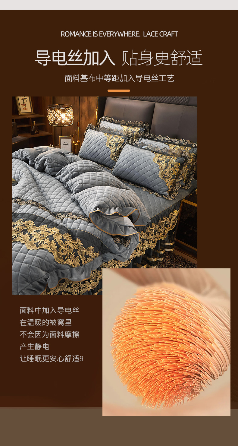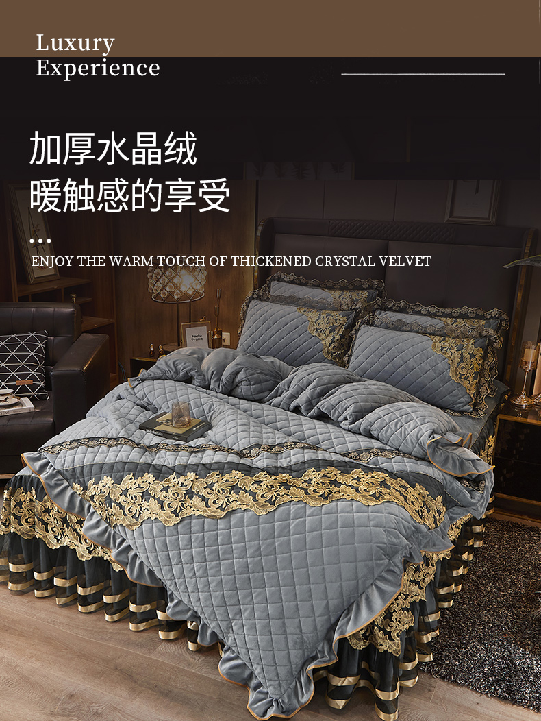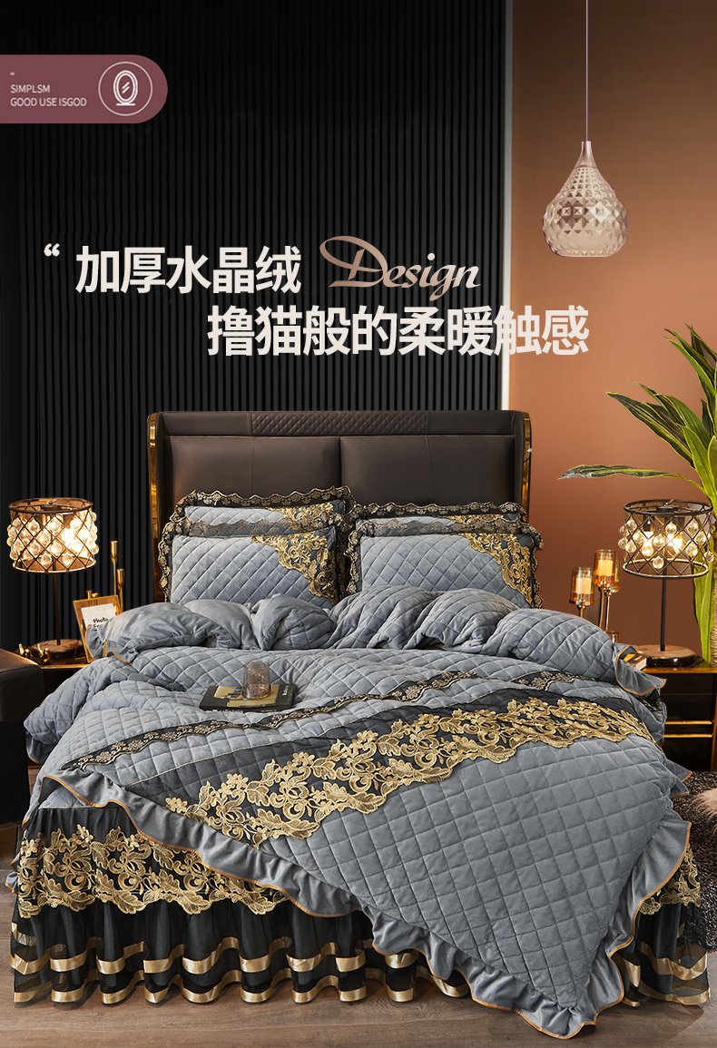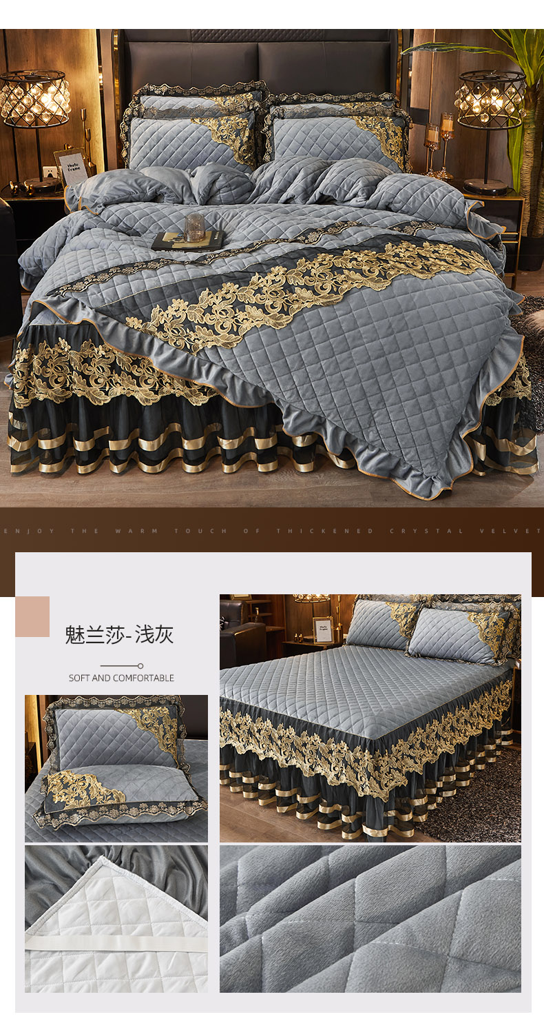 当前位置: 91家纺网 > 商品网购 > 床品套件 > 四件套 > 水晶绒四件套 > 恋尚2023新款魅兰莎水晶绒系列被套夹棉床裙四件套 浅灰