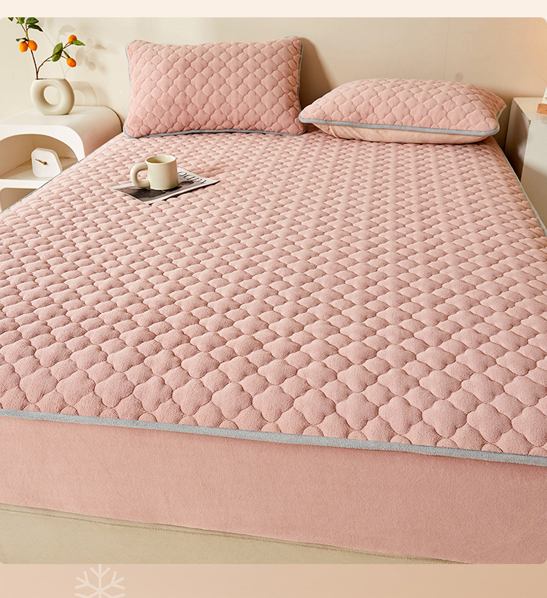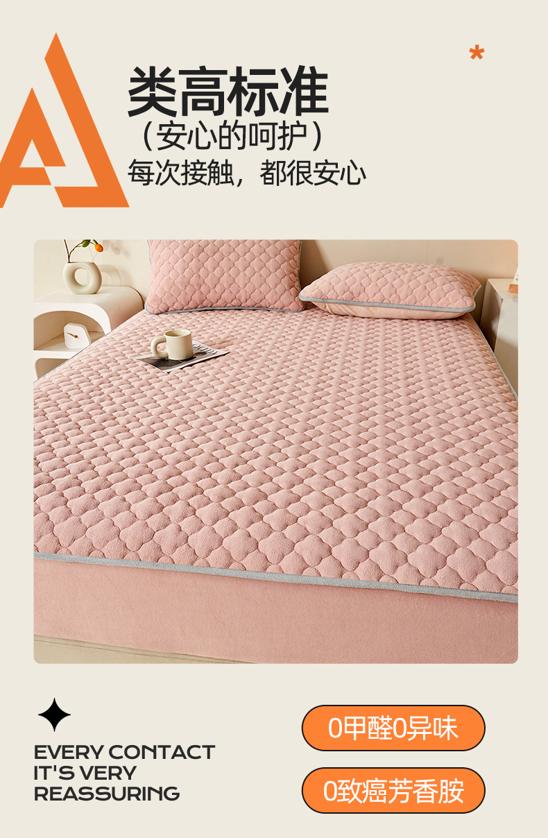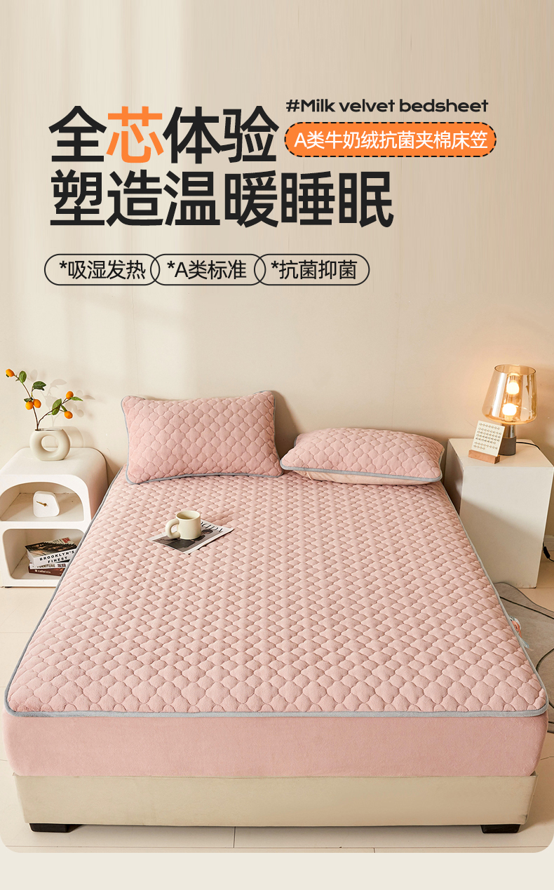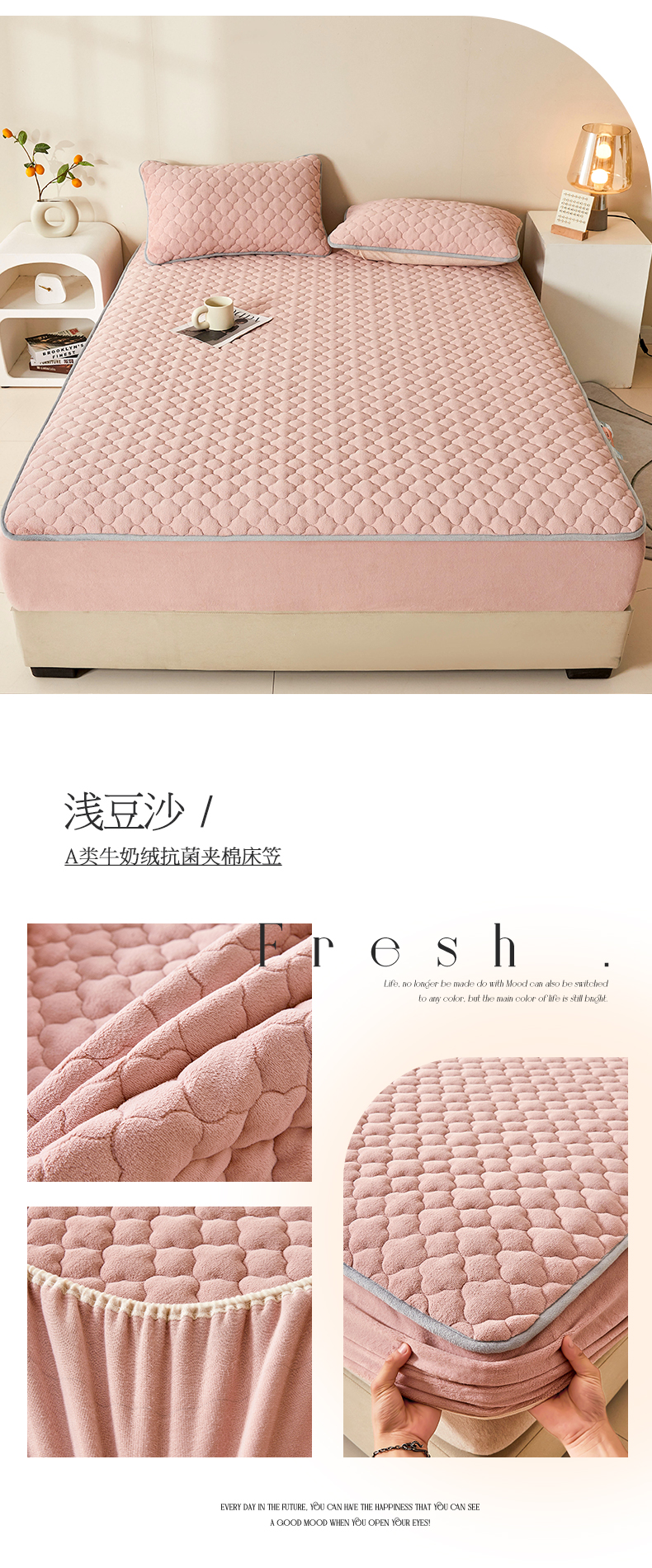 商品名称:雯豆 2023新品纯色牛奶绒夹棉床笠床垫保护套A类保暖加厚床笠 牛奶绒床笠-浅豆沙