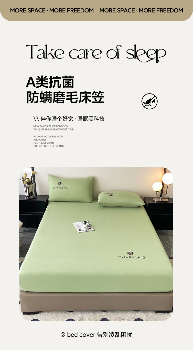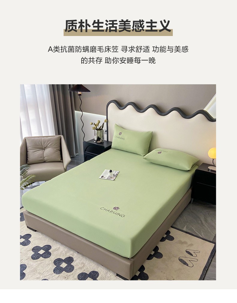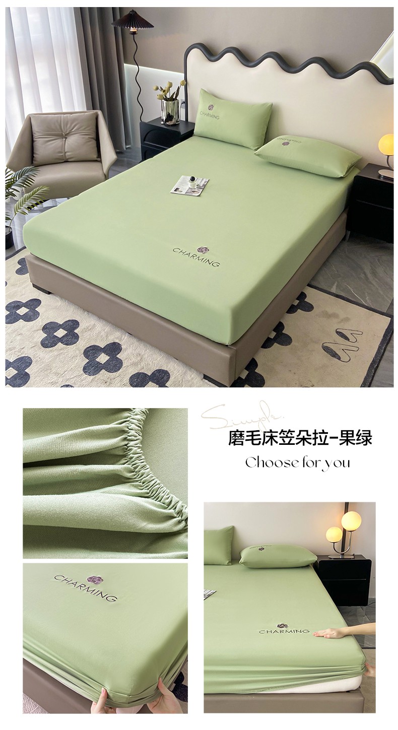 当前位置: 91家纺网 > 商品网购 > 床品套件 > 三件套 > 古吉梦 2024新款A类抗菌防螨磨毛床笠 磨毛床笠朵拉-果绿