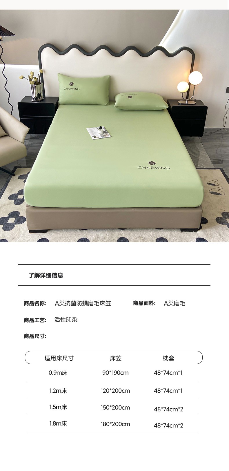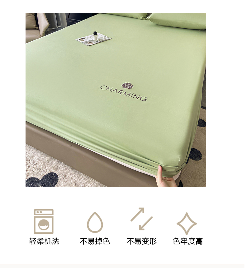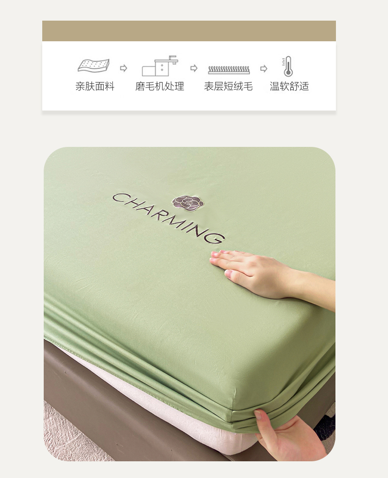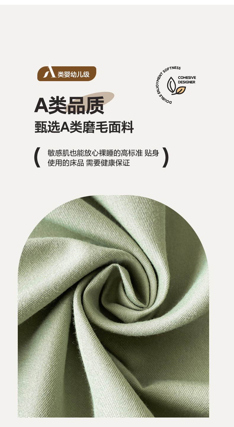 当前位置: 91家纺网 > 商品网购 > 床品套件 > 三件套 > 古吉梦 2024新款A类抗菌防螨磨毛床笠 磨毛床笠朵拉-果绿