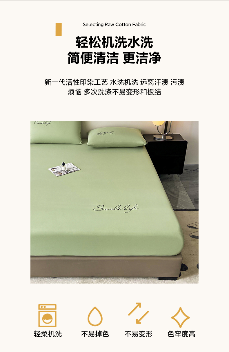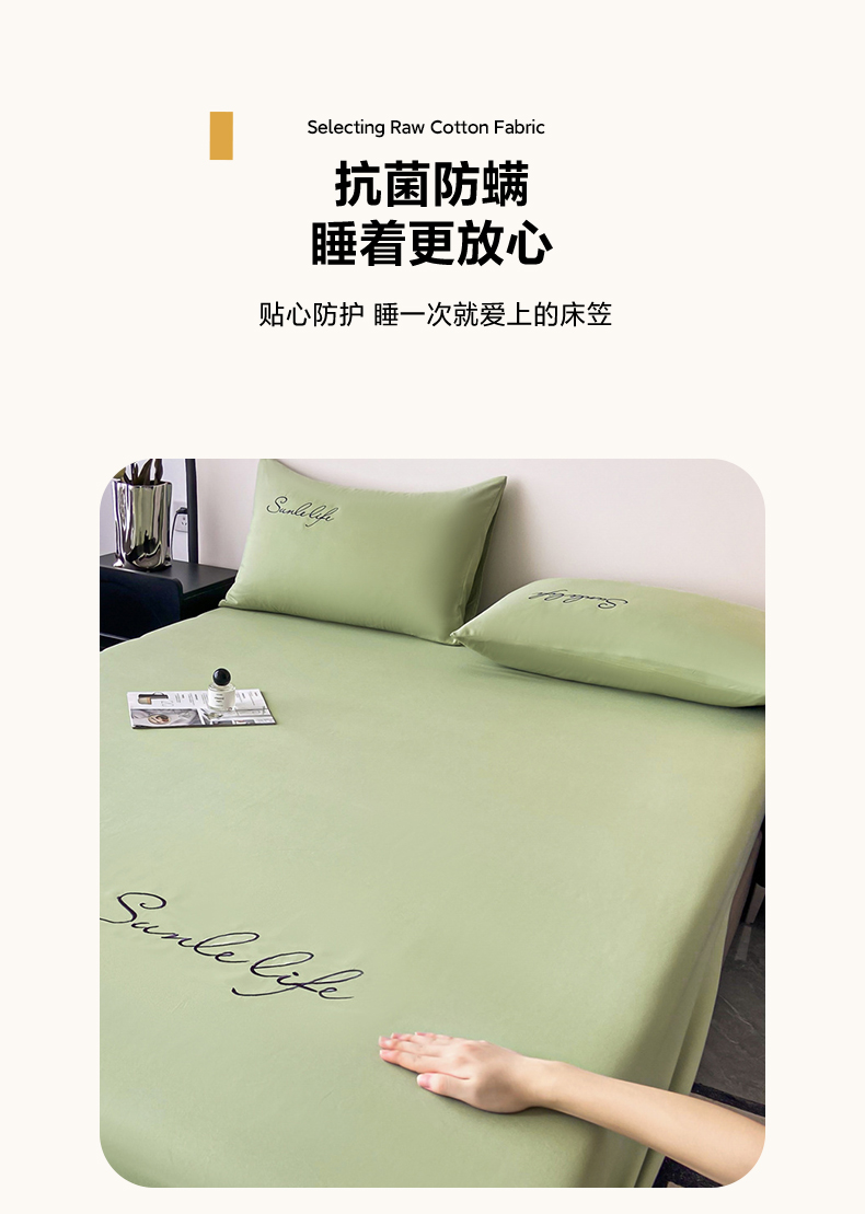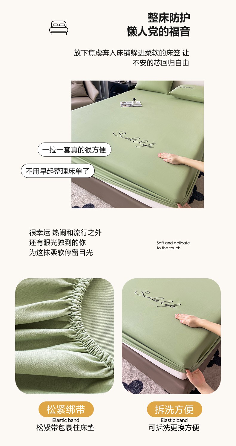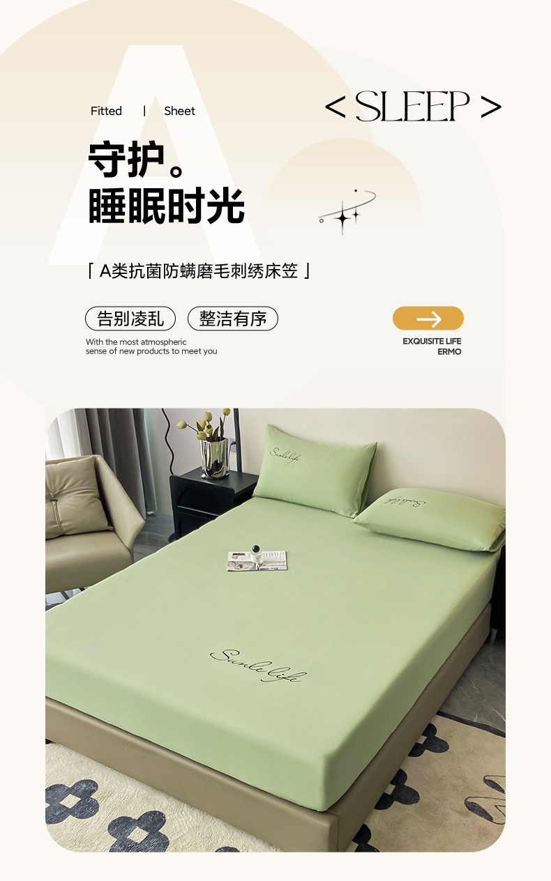 当前位置: 91家纺网 > 商品网购 > 床品套件 > 三件套 > 古吉梦 2023新款A类抗菌防瞒磨毛刺绣S床笠系列 磨毛S床笠-果绿