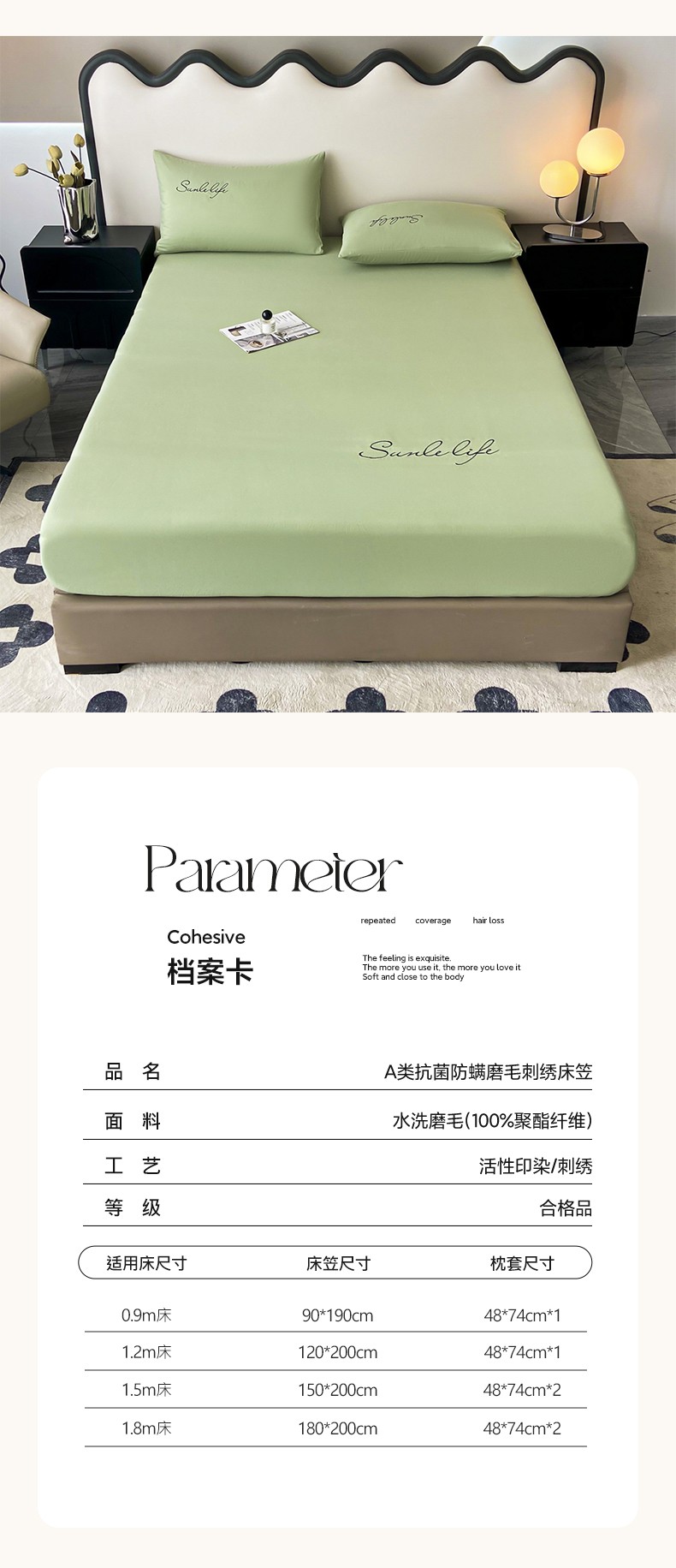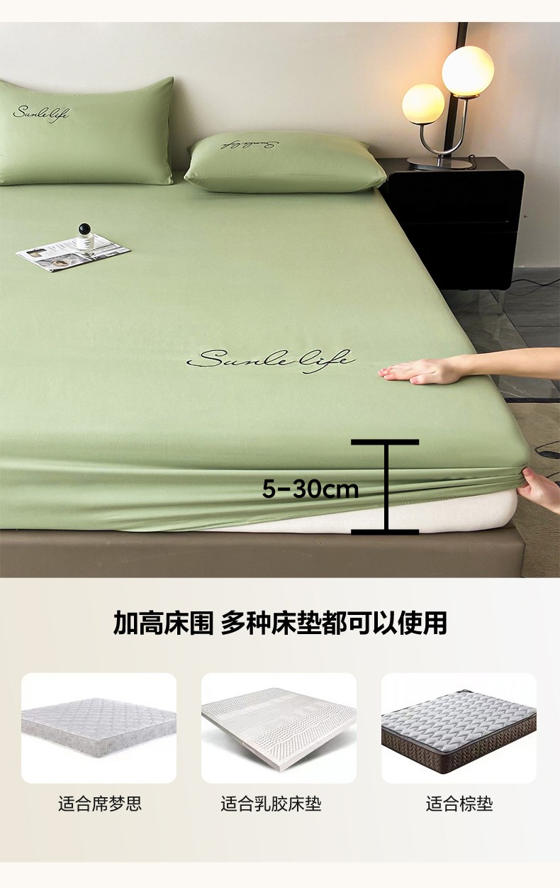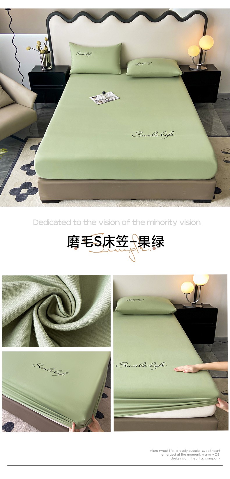 当前位置: 91家纺网 > 商品网购 > 床品套件 > 三件套 > 古吉梦 2023新款A类抗菌防瞒磨毛刺绣S床笠系列 磨毛S床笠-果绿