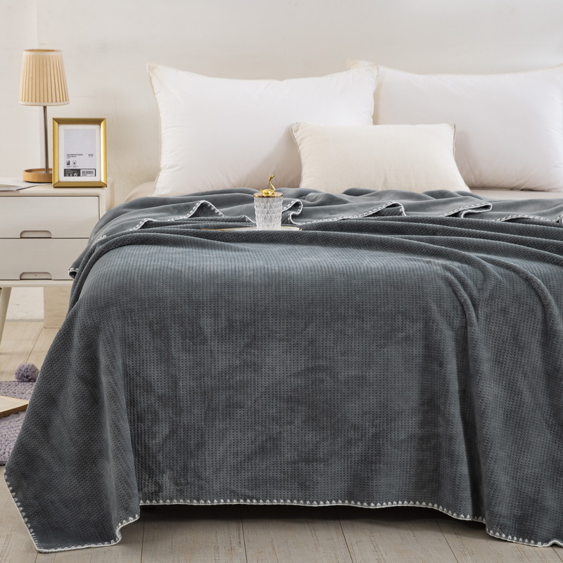 卉晨毛毯 2024新款牛奶绒双层华夫格毯空调毯午睡毯毛毯 灰