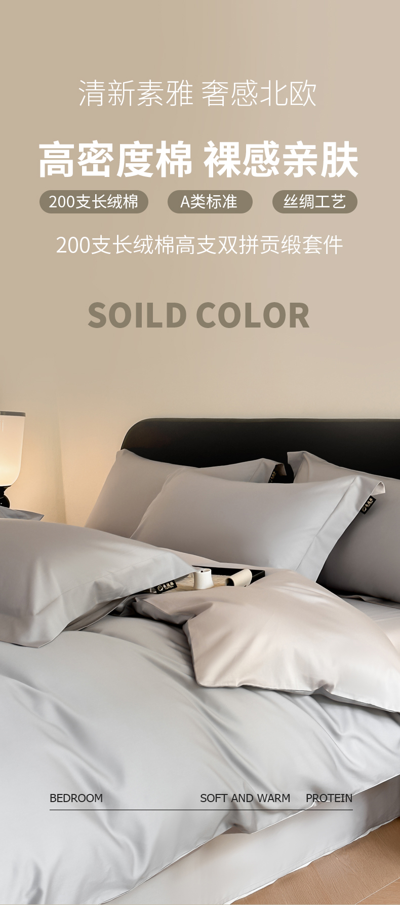 商品名称:618家纺2023新款A类50S100支长绒棉全棉双拼炫拼系列四件套 炫拼-火山灰