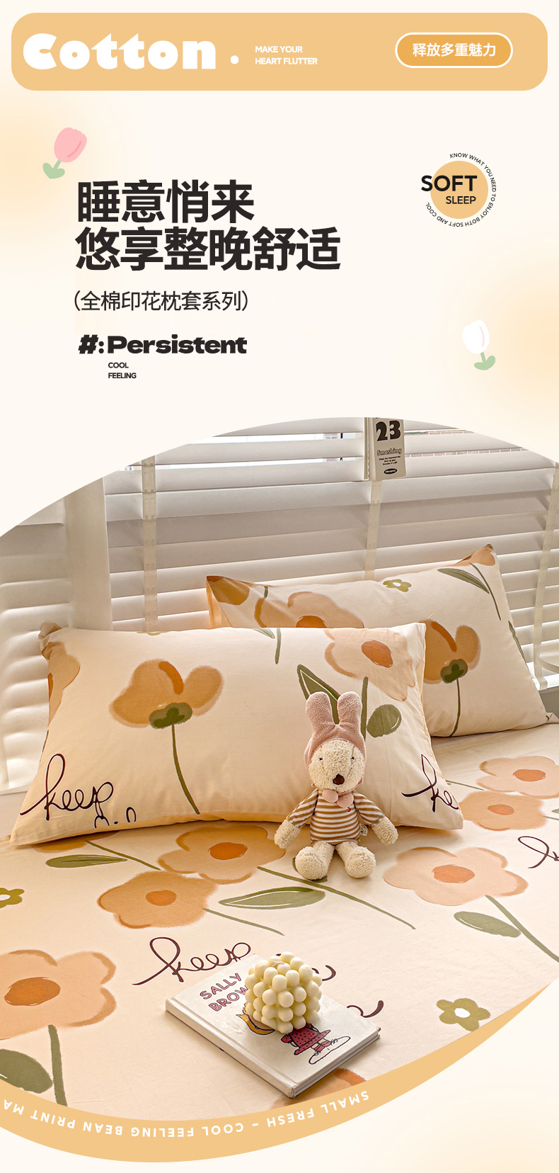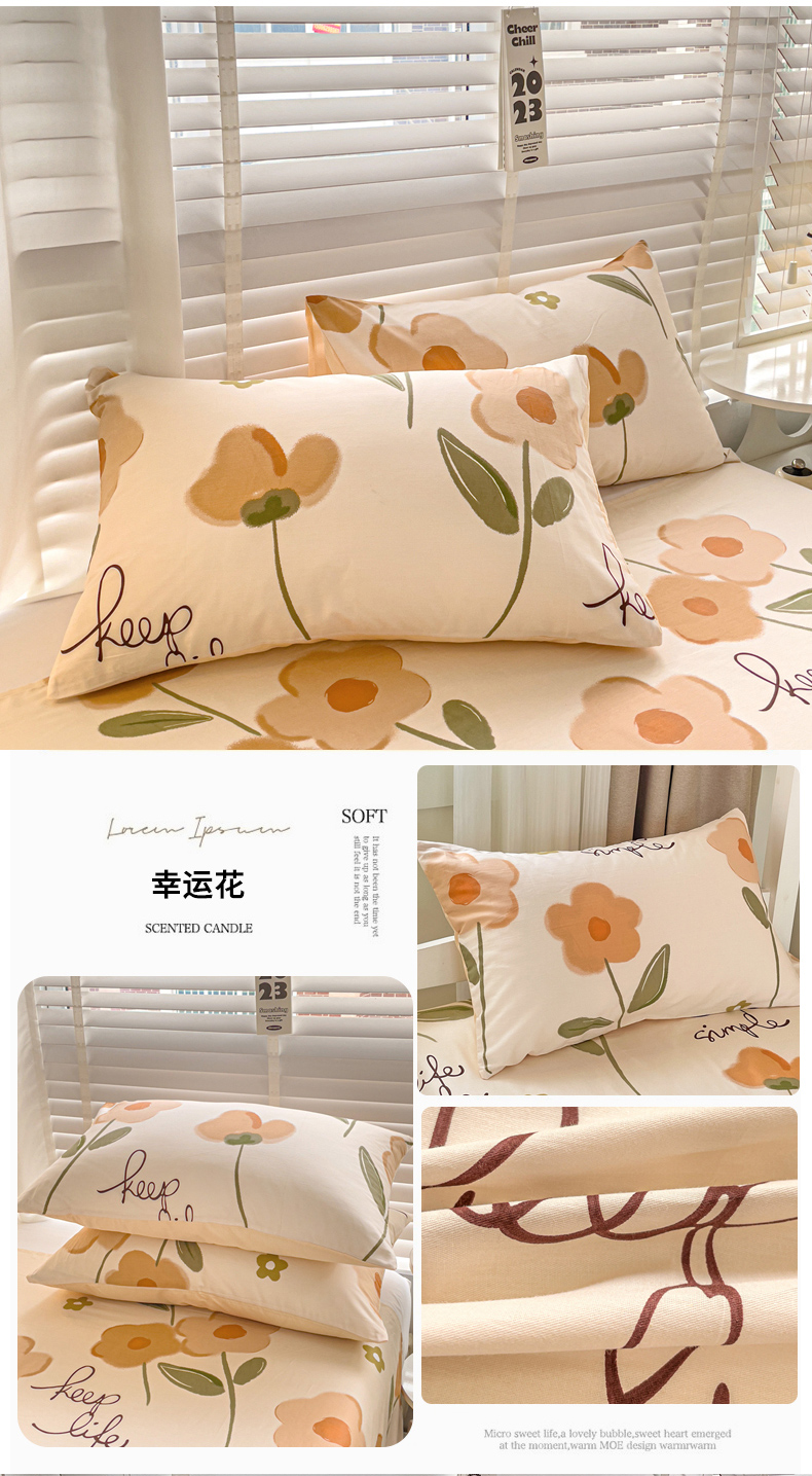 商品名称:名兮家居 2023新款全棉简约印花枕套 幸运花