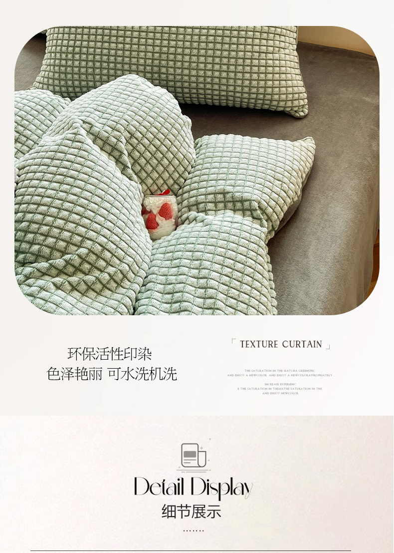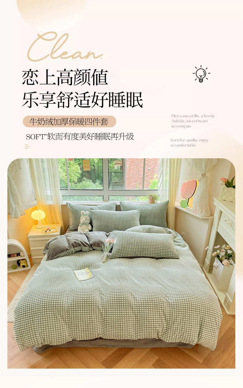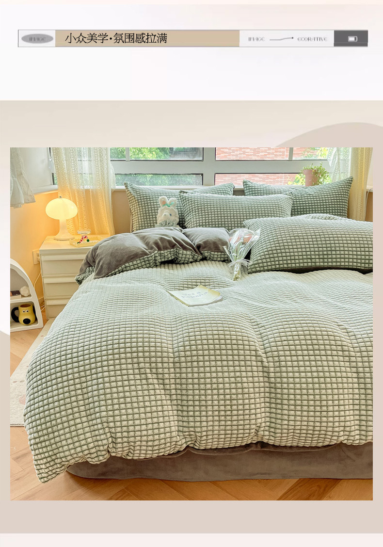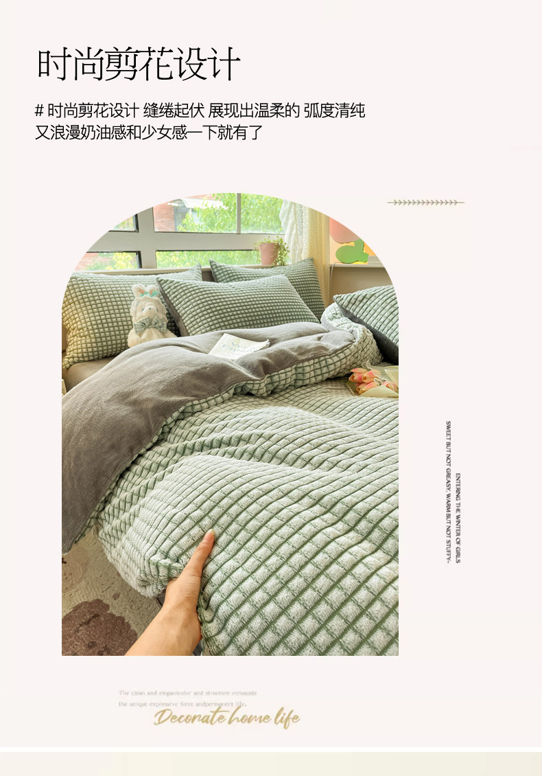 商品名称:慕澄家纺 2024简约款剪花牛奶绒四件套 简约-绿