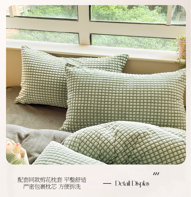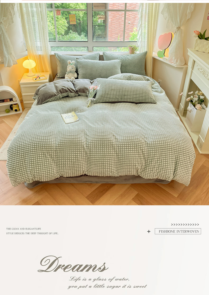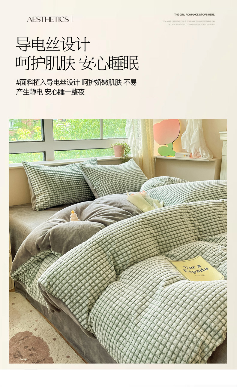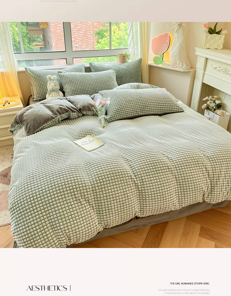 商品名称:慕澄家纺 2024简约款剪花牛奶绒四件套 简约-绿