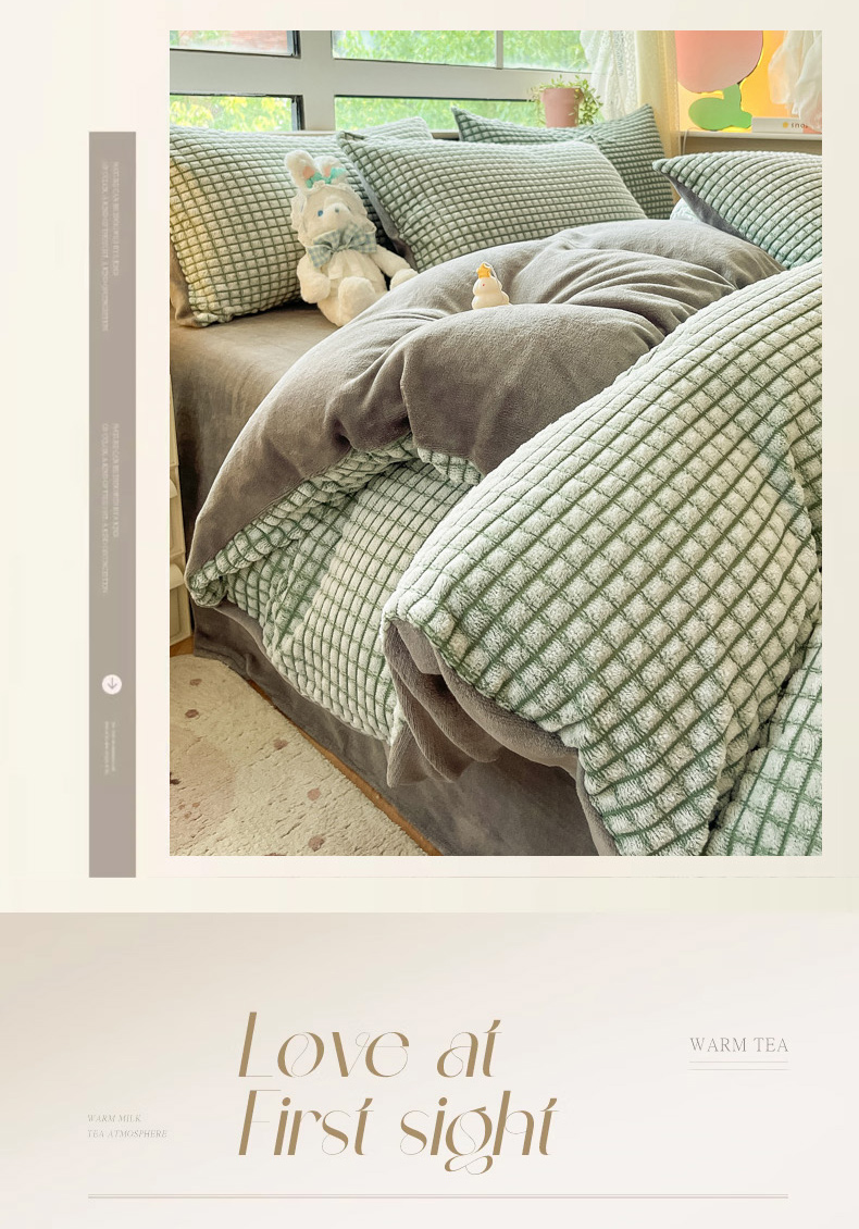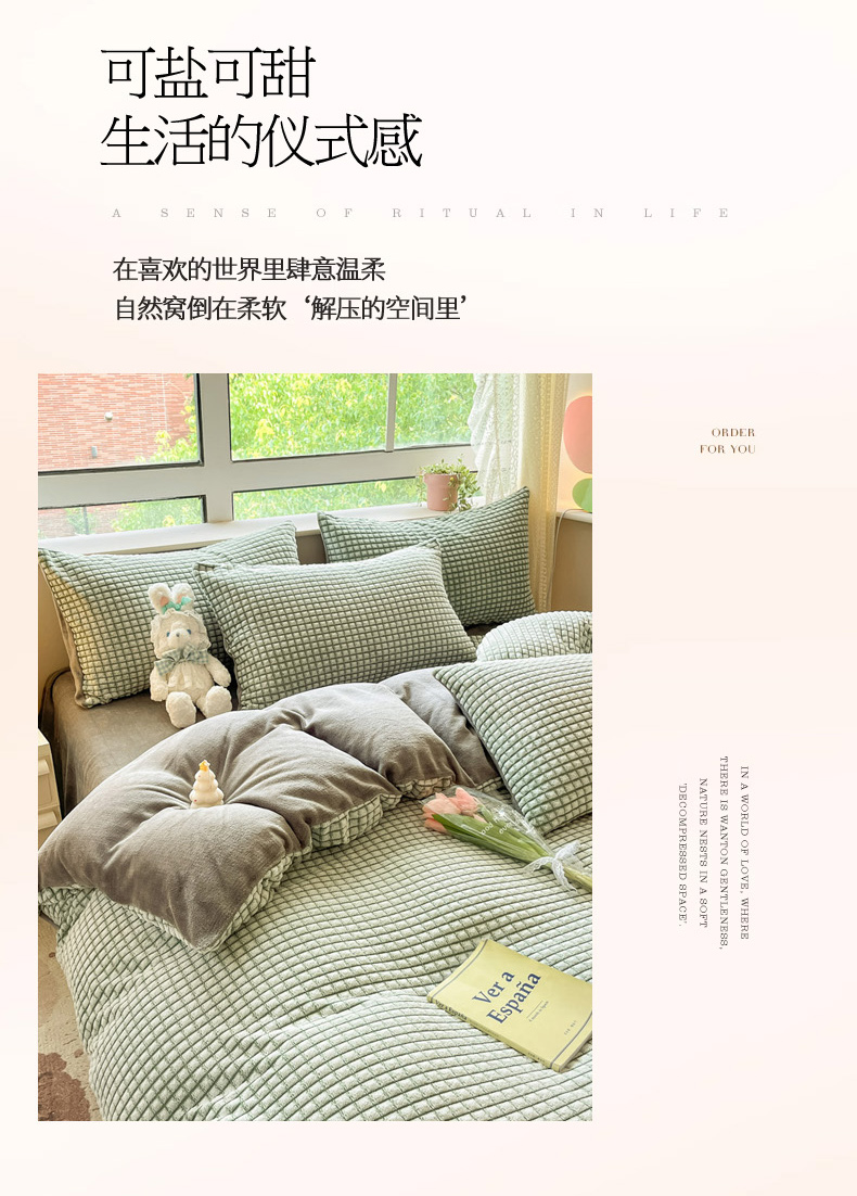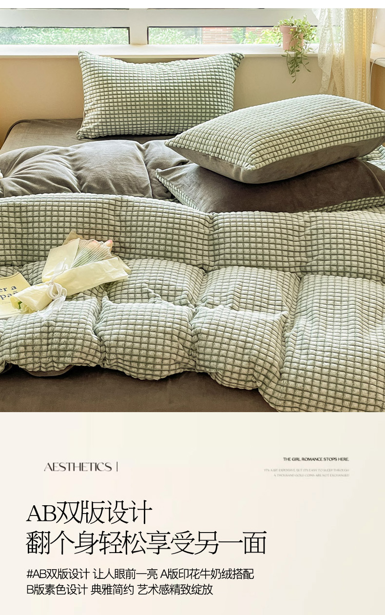 慕澄家纺 2024简约款剪花牛奶绒四件套 简约-绿