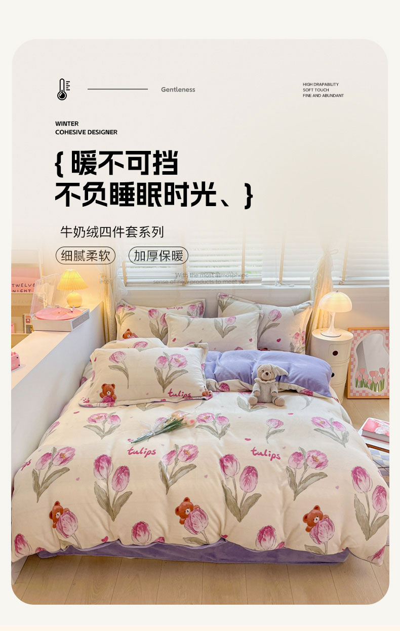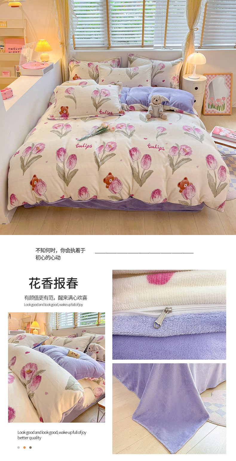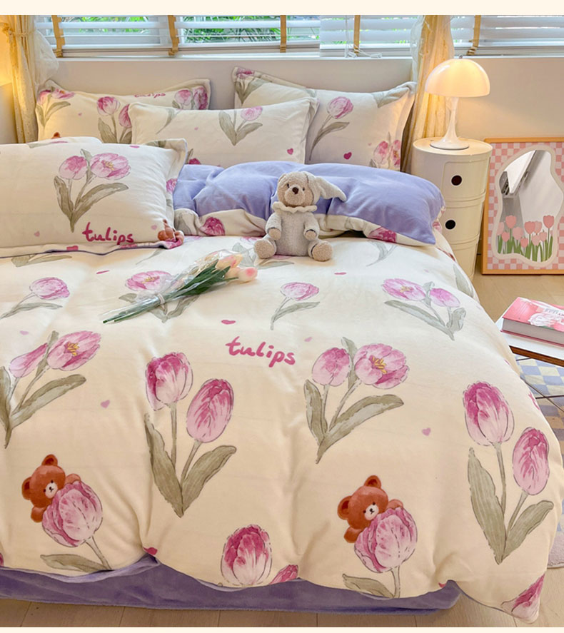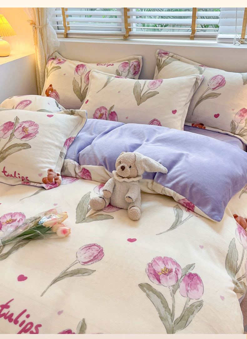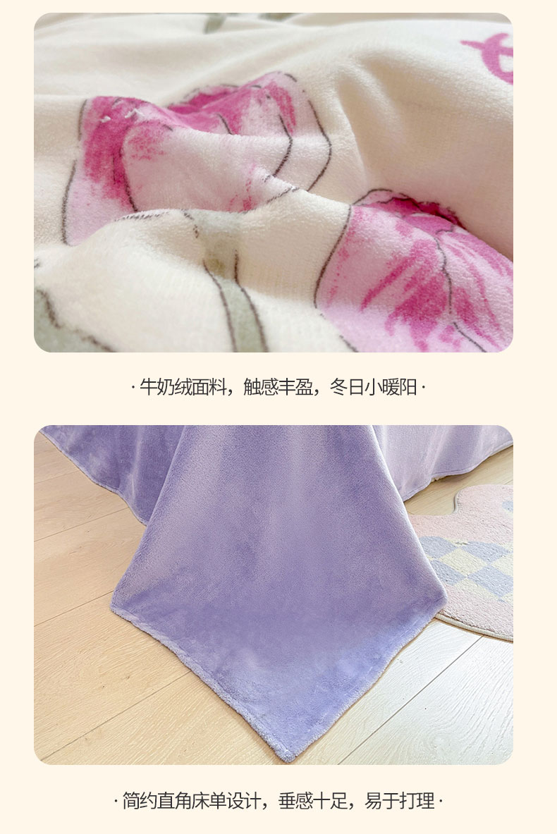 (总)康纳利 2025新款亲舒适加厚牛奶绒花边四件套,KT花园,布丁,粉萌兔,花眠语,幻蝶-白,幻蝶-粉,礼物小咪,凝夜紫