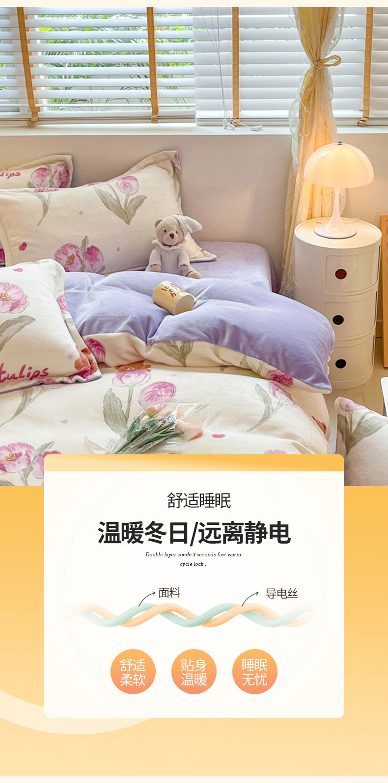 康纳利 2023新款印花牛奶绒单被套 花香报春