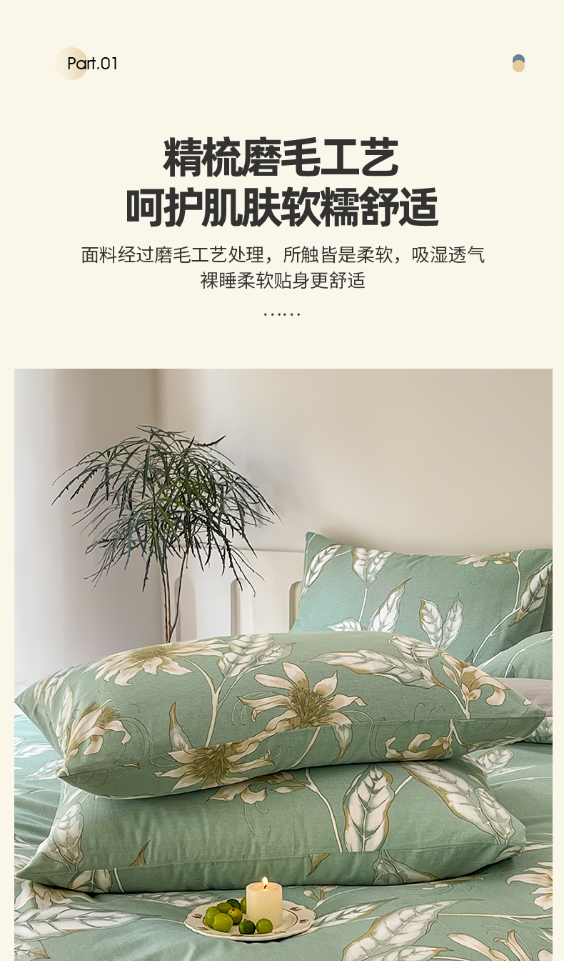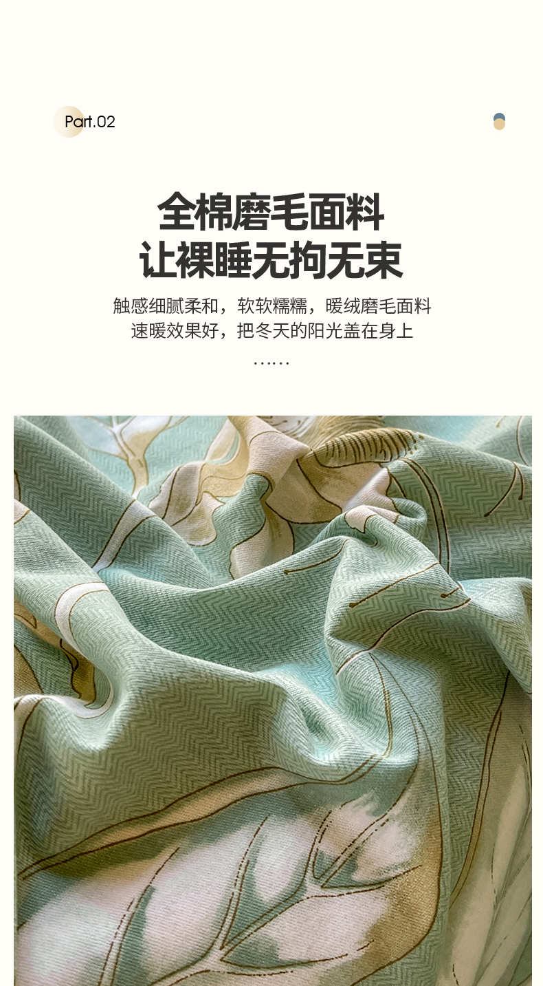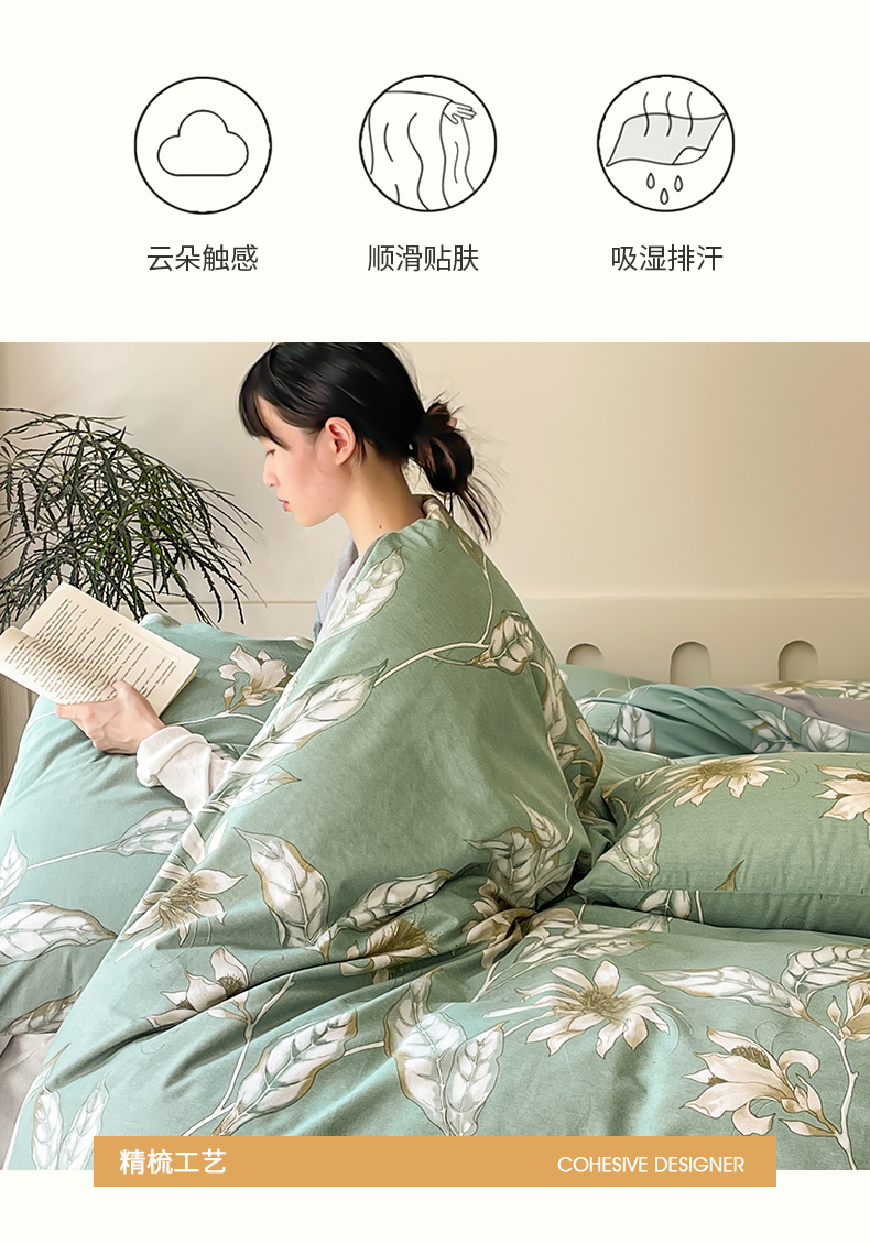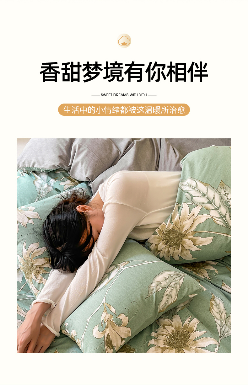 当前位置: 91家纺网 > 商品网购 > 床品套件 > 棉乐町家居 2025新款全棉长绒棉磨毛四件套 花香溢梦-绿