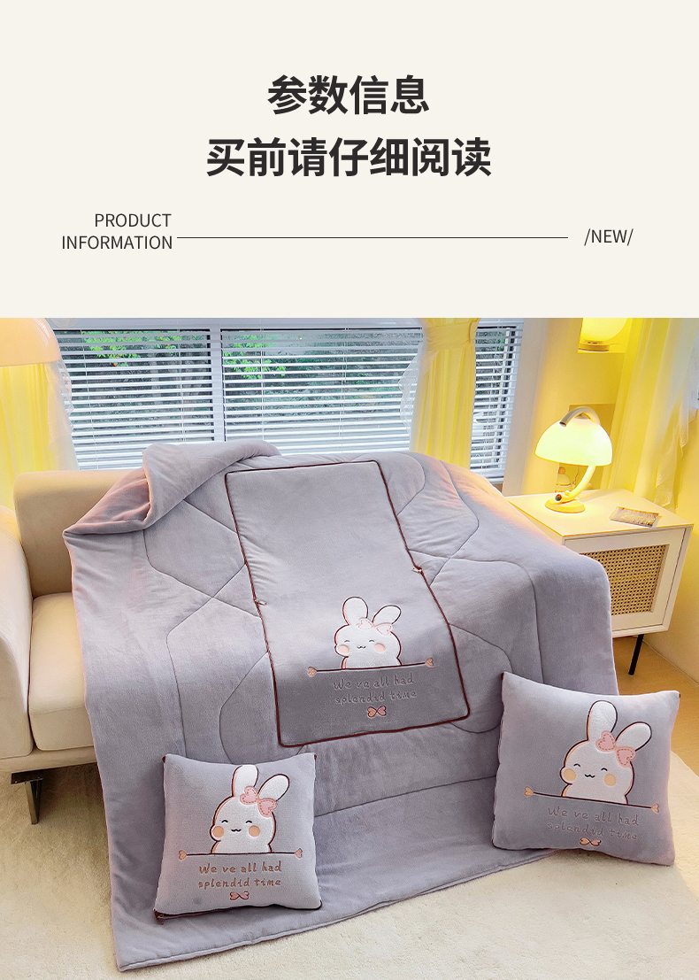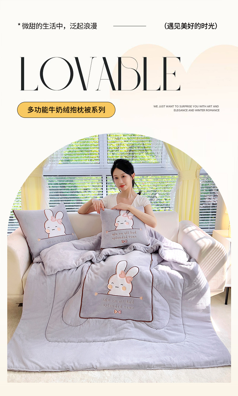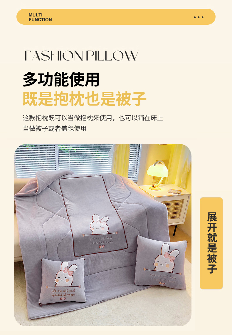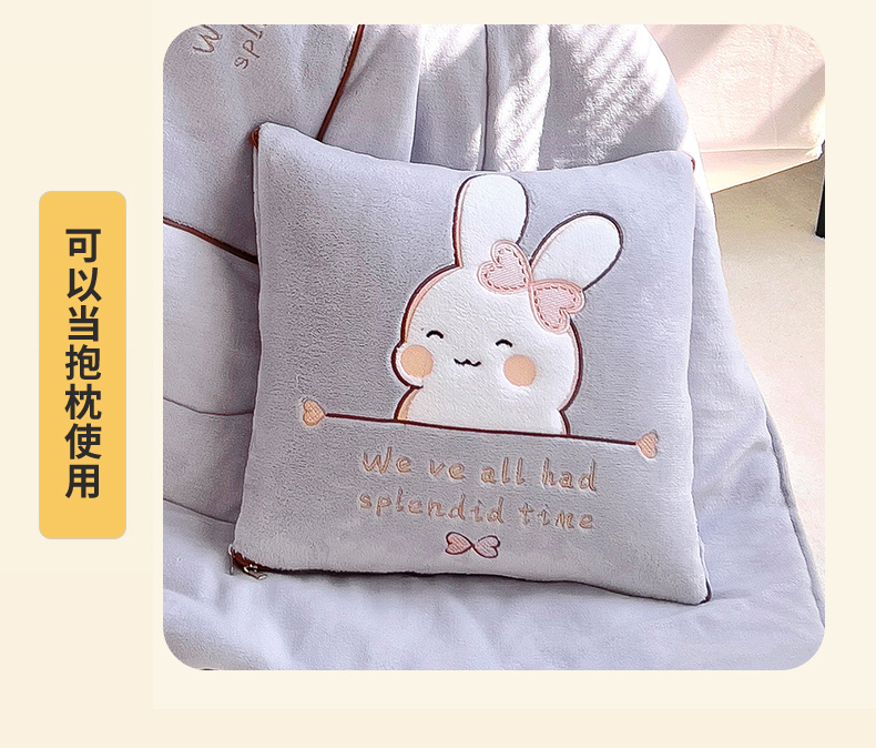 阳光依佰 2023新款多功能牛奶绒抱枕被-暖暖兔 浅紫