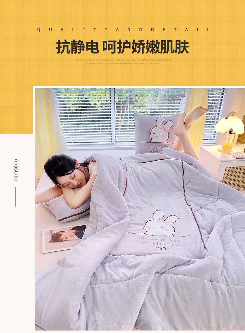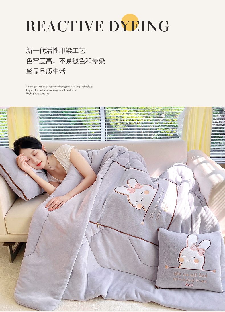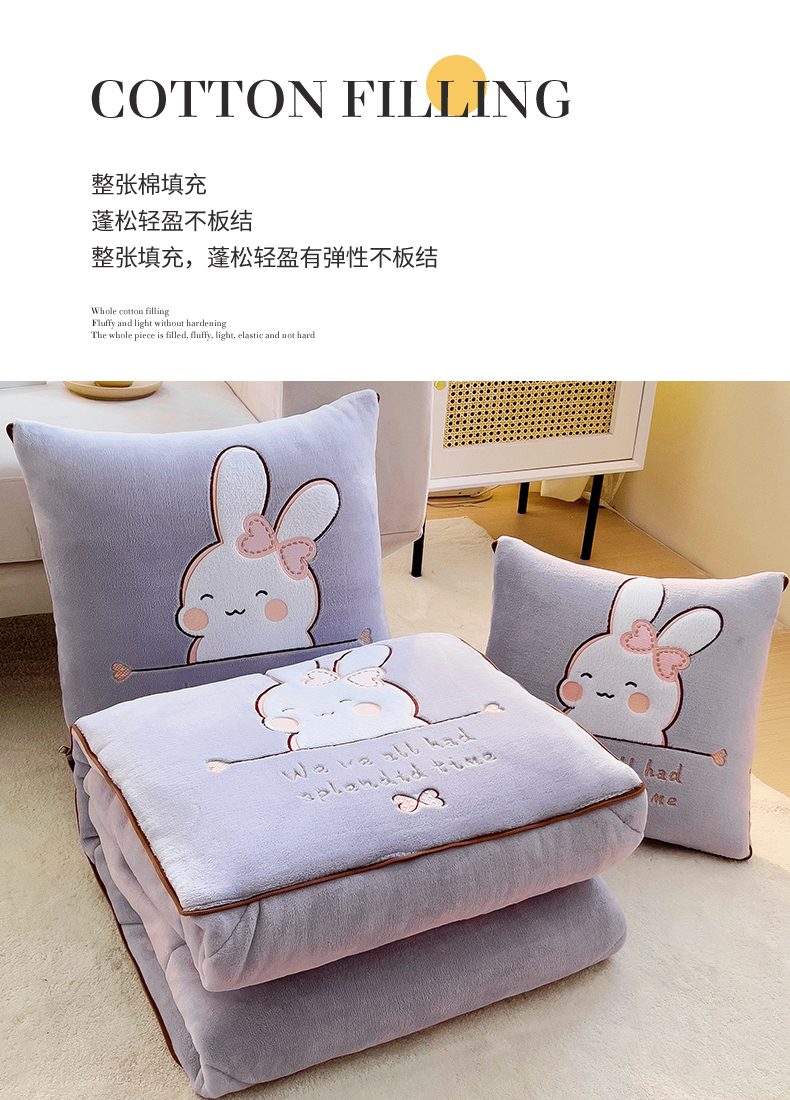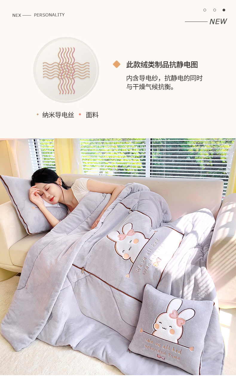 阳光依佰 2023新款多功能牛奶绒抱枕被-暖暖兔 浅紫