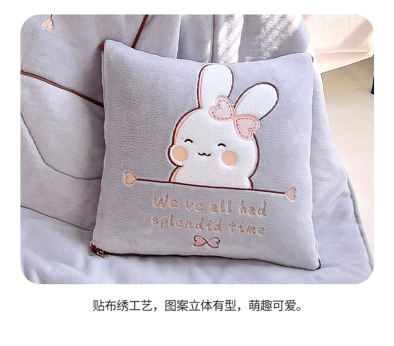 (总)阳光依佰 2023新款磨毛贴布绣四季款抱枕被-梦里兔,梦里兔-豆沙,梦里兔-粉色,梦里兔-明黄,梦里兔-墨绿,梦里兔-浅灰,梦里兔-浅蓝,梦里兔-星空蓝