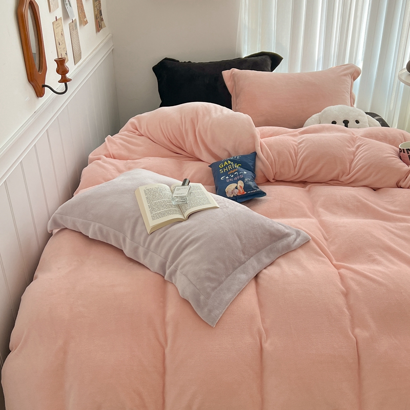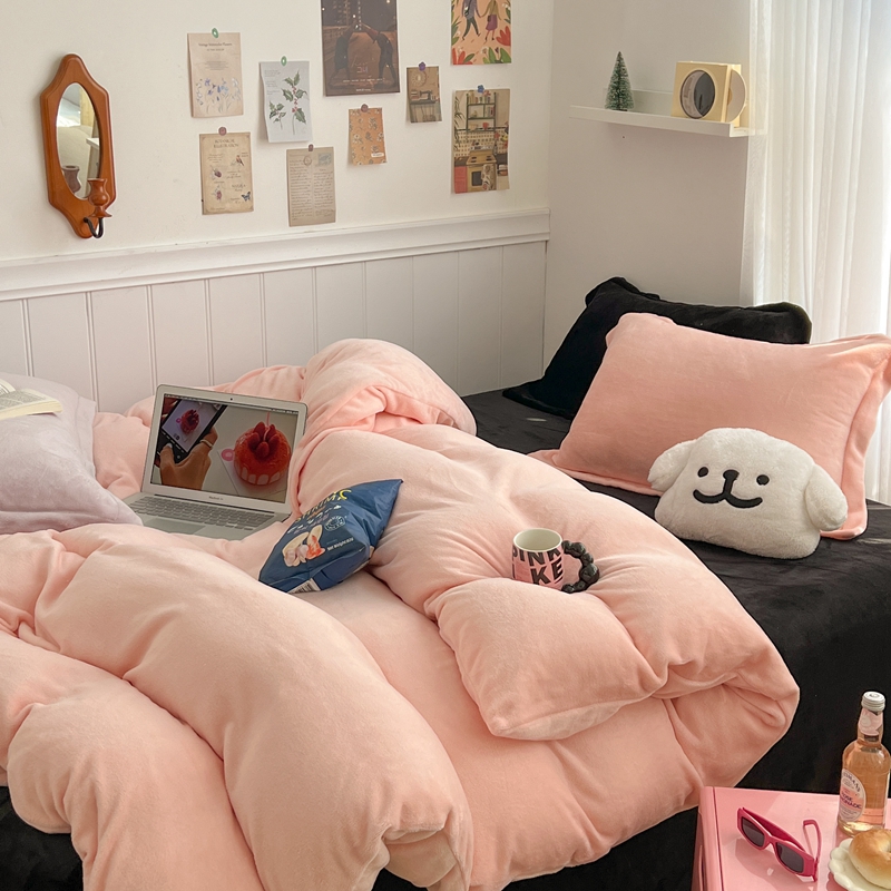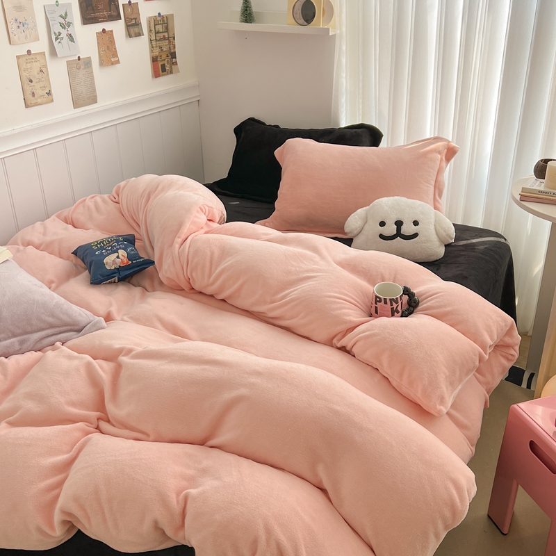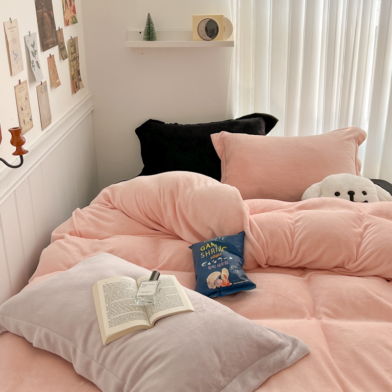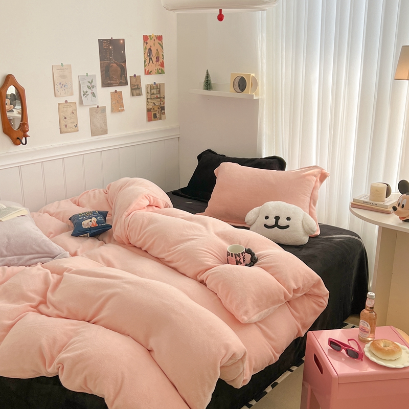 当前位置: 91家纺网 > 商品网购 > 床品套件 > 四件套 > 牛奶绒四件套 > 顾里家纺 2023新款多巴胺撞色混搭牛奶绒四件套 甜酷粉黑