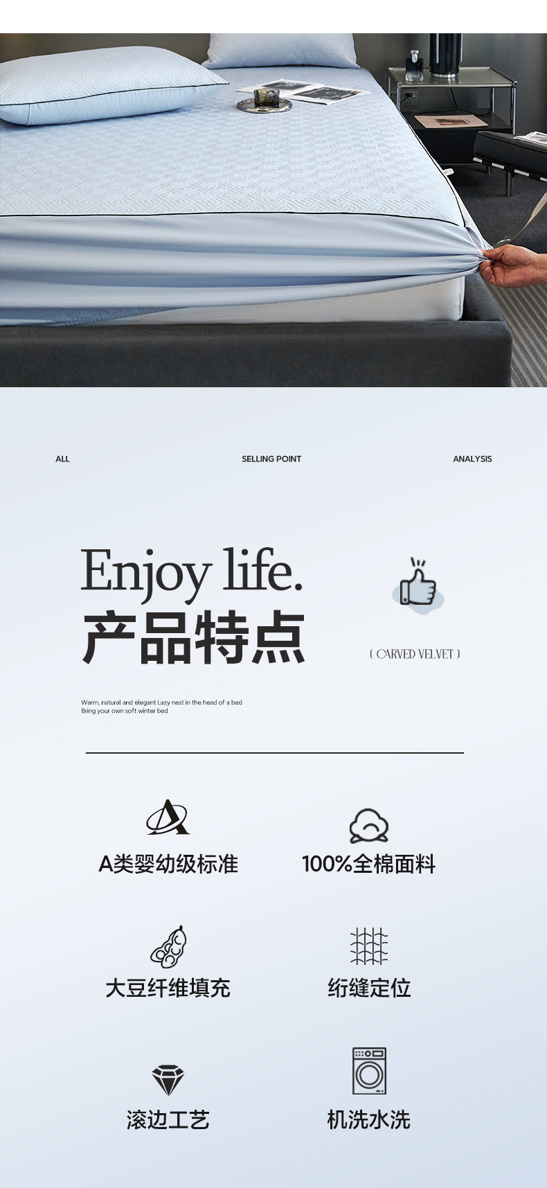 商品名称:八十八家纺2023新款大豆纤维夹棉床笠 婴儿蓝