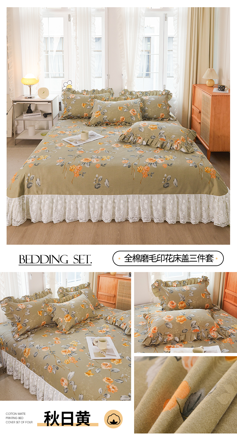 商品名称:宜凡家纺 2023新款全棉加厚磨毛印花床盖三件套 秋日黄