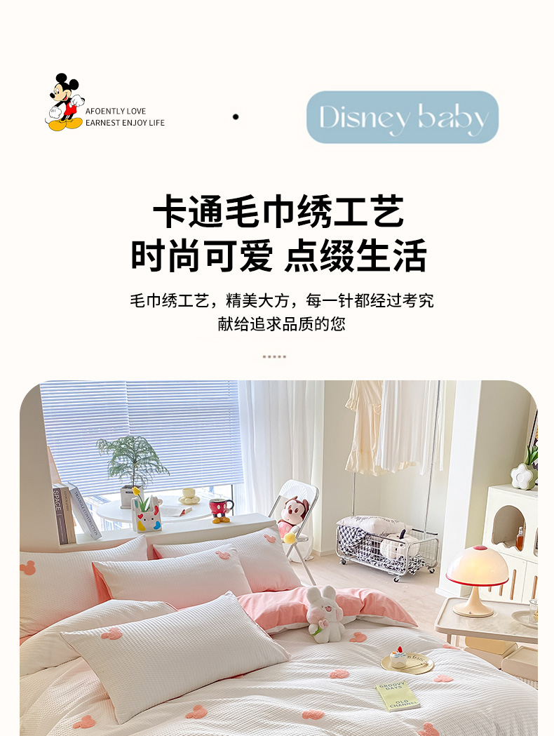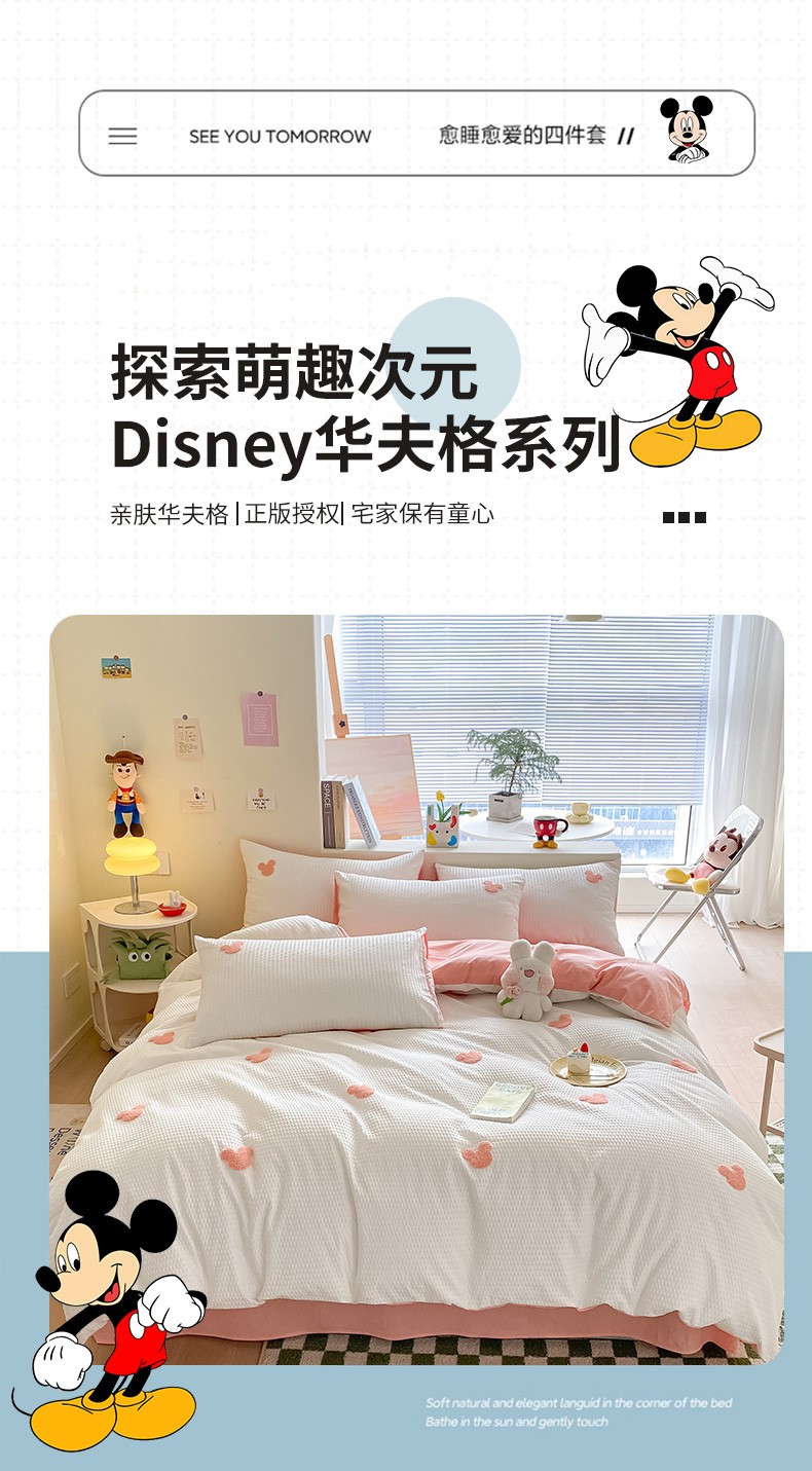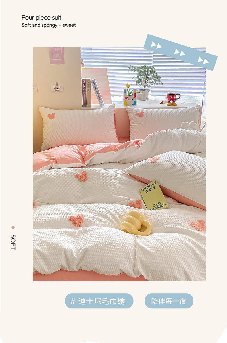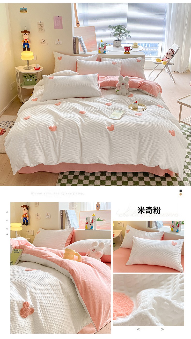 当前位置: 91家纺网 > 商品网购 > 床品套件 > 四件套 > 水洗棉四件套 > 眠帛家居 2024新款华夫格迪士尼米奇毛巾绣系列 米奇粉