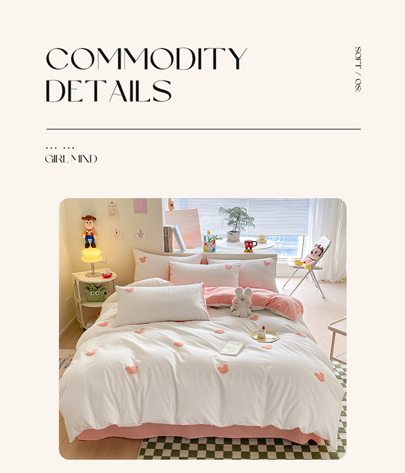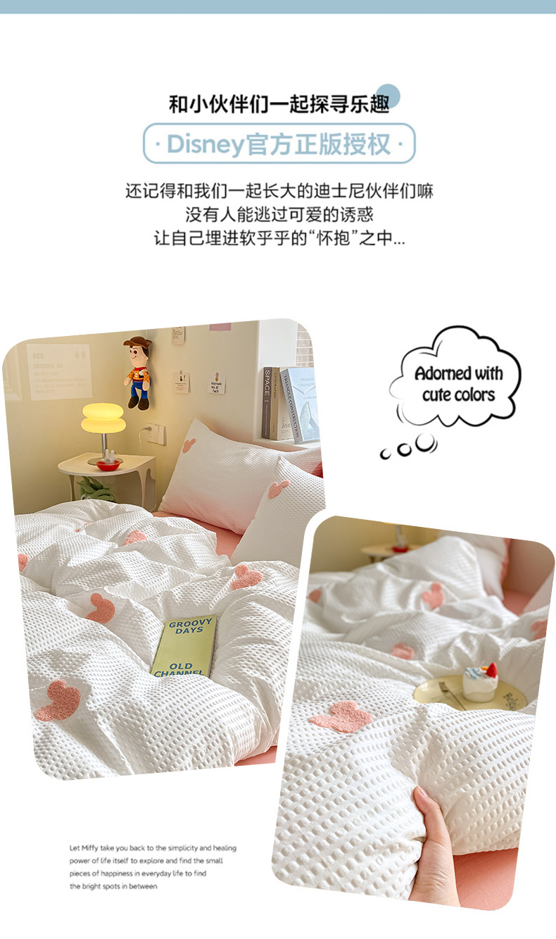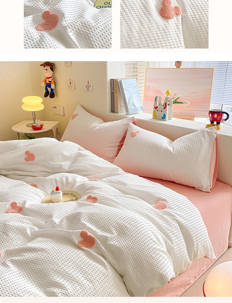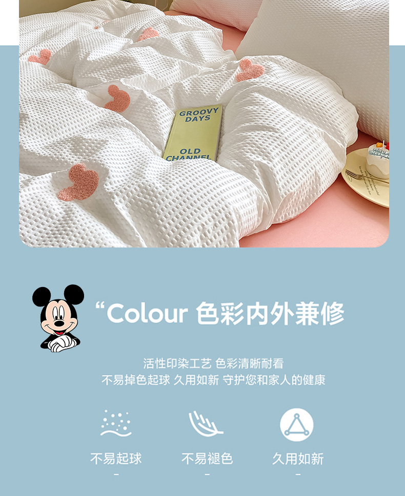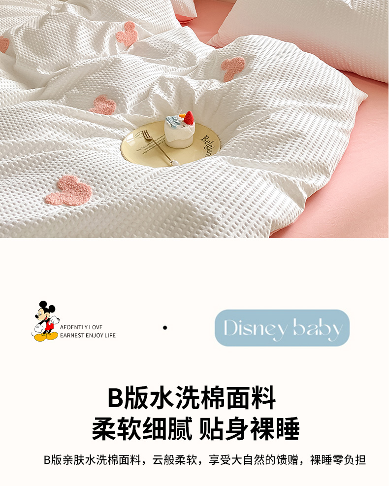 当前位置: 91家纺网 > 商品网购 > 床品套件 > 四件套 > 水洗棉四件套 > 眠帛家居 2024新款华夫格迪士尼米奇毛巾绣系列 米奇粉