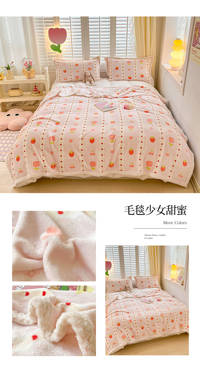 商品名称:川悦生活 2023新款双面240克宽边牛奶绒毯子 毛毯少女甜蜜