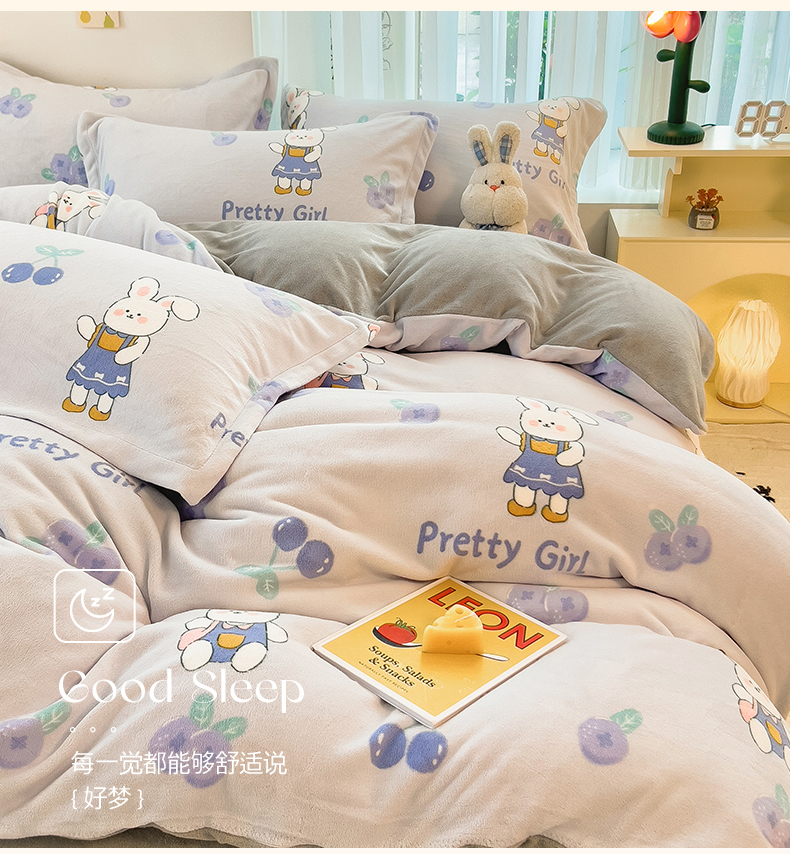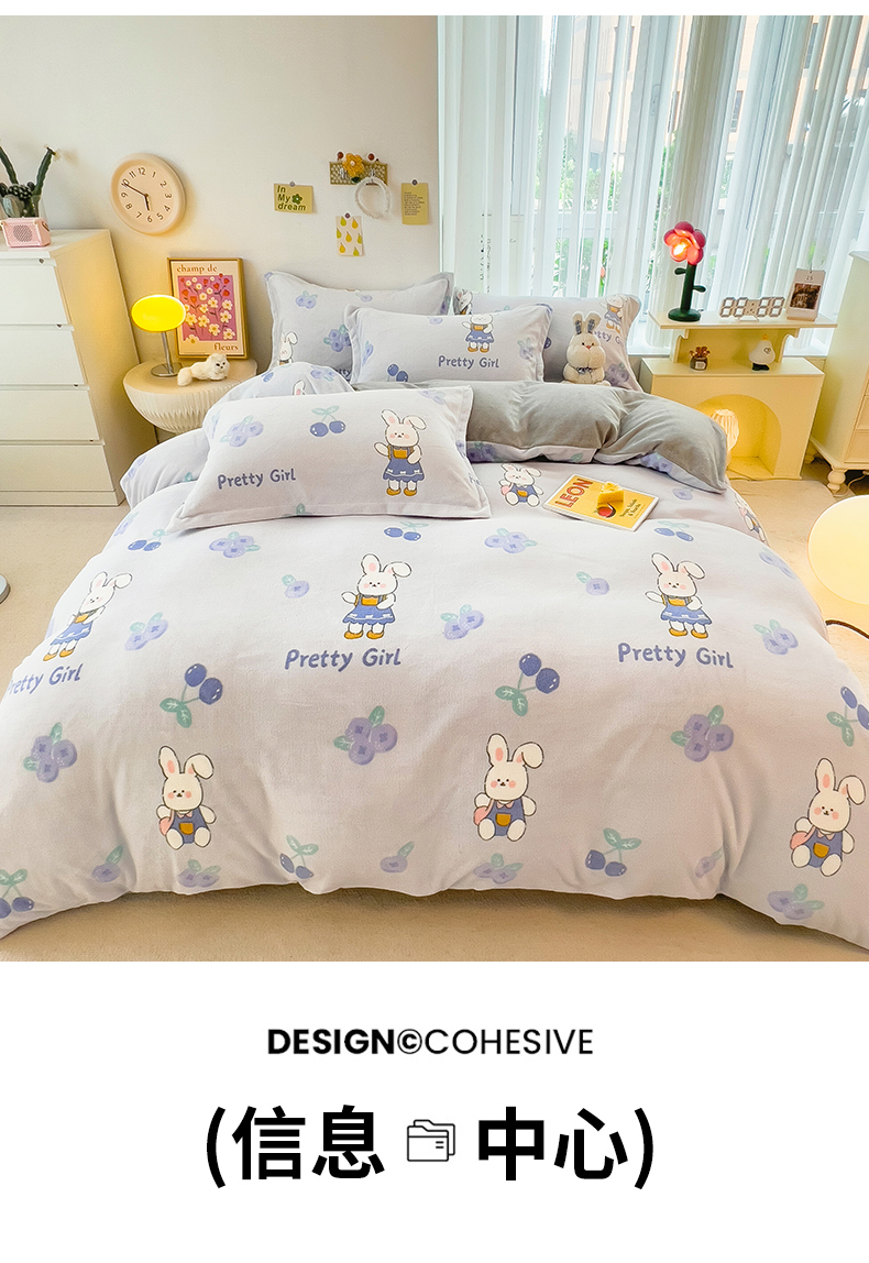 全季家居2023新款小清新A类高克重加厚印花牛奶绒四件套 欢乐兔