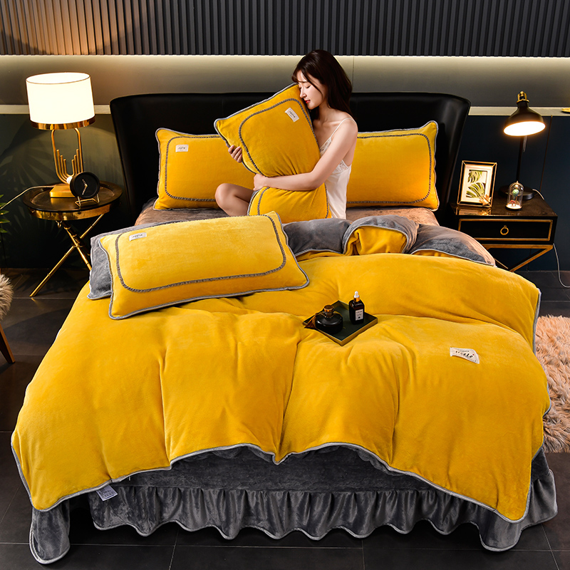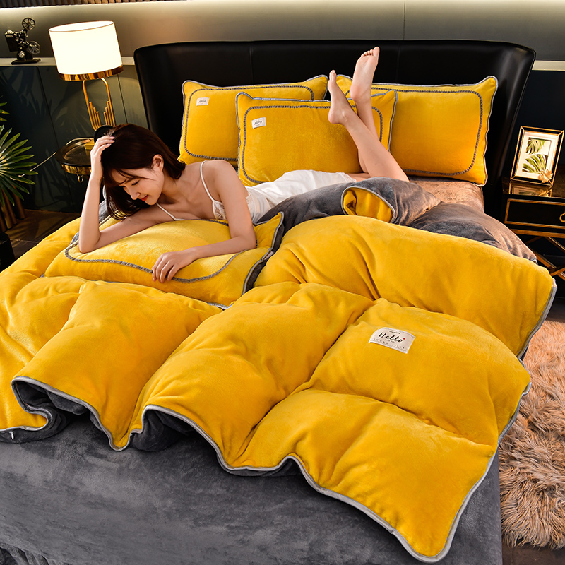 商品名称:畅畅家纺 2023新款纯色8.5斤9斤牛奶绒法莱绒宝宝金貂绒四件套 黄色+深灰