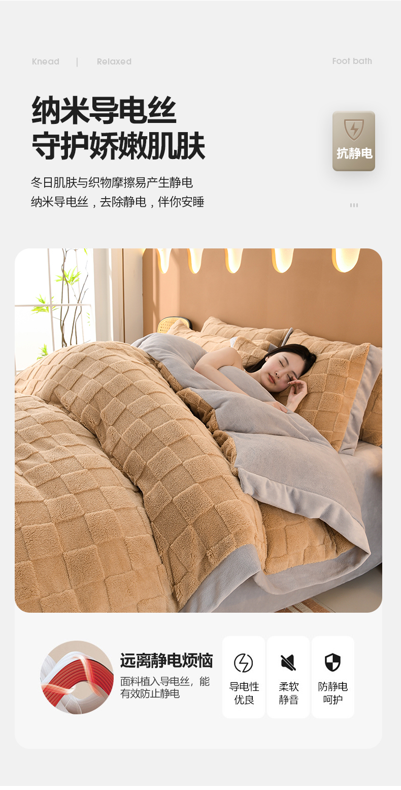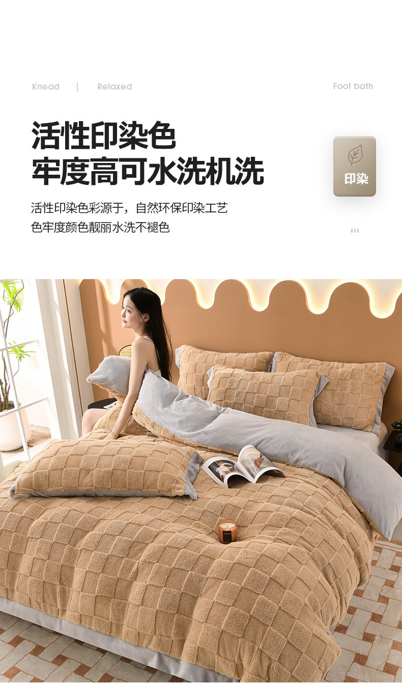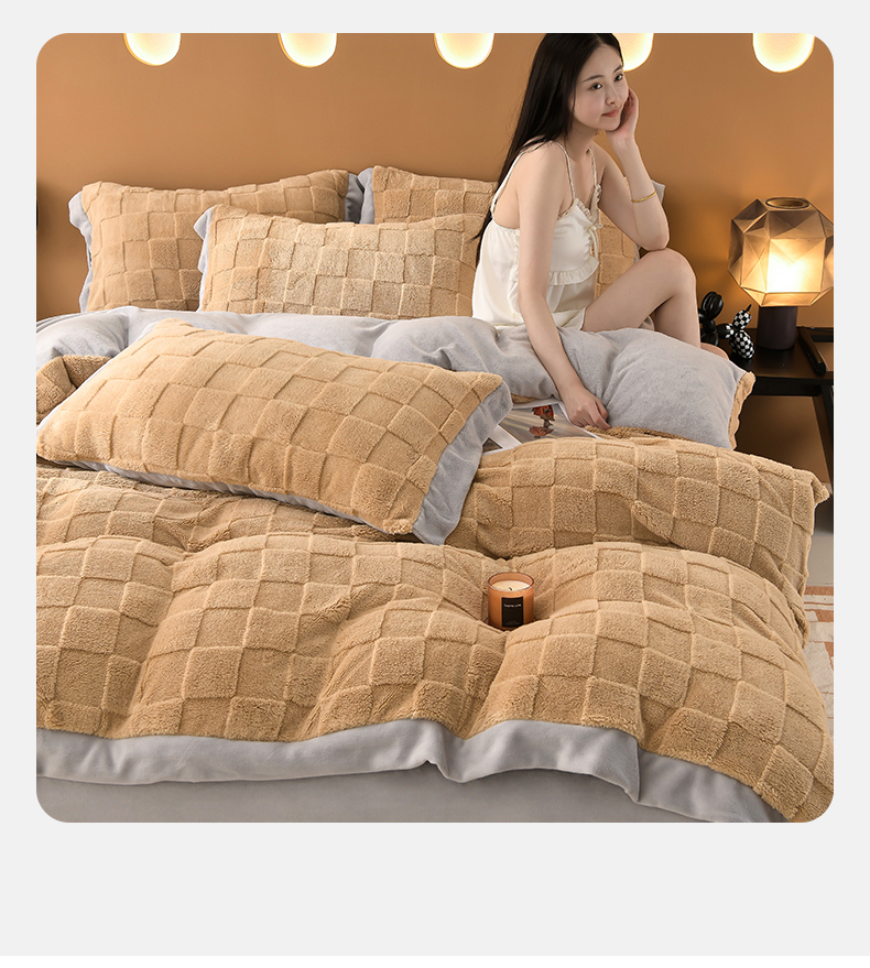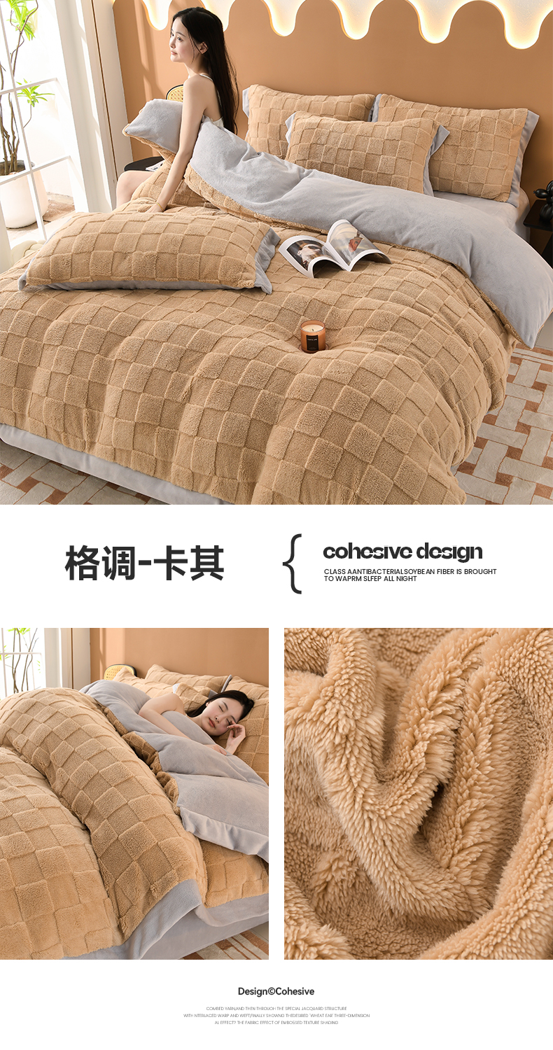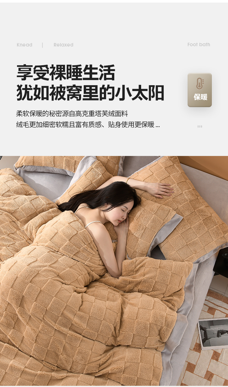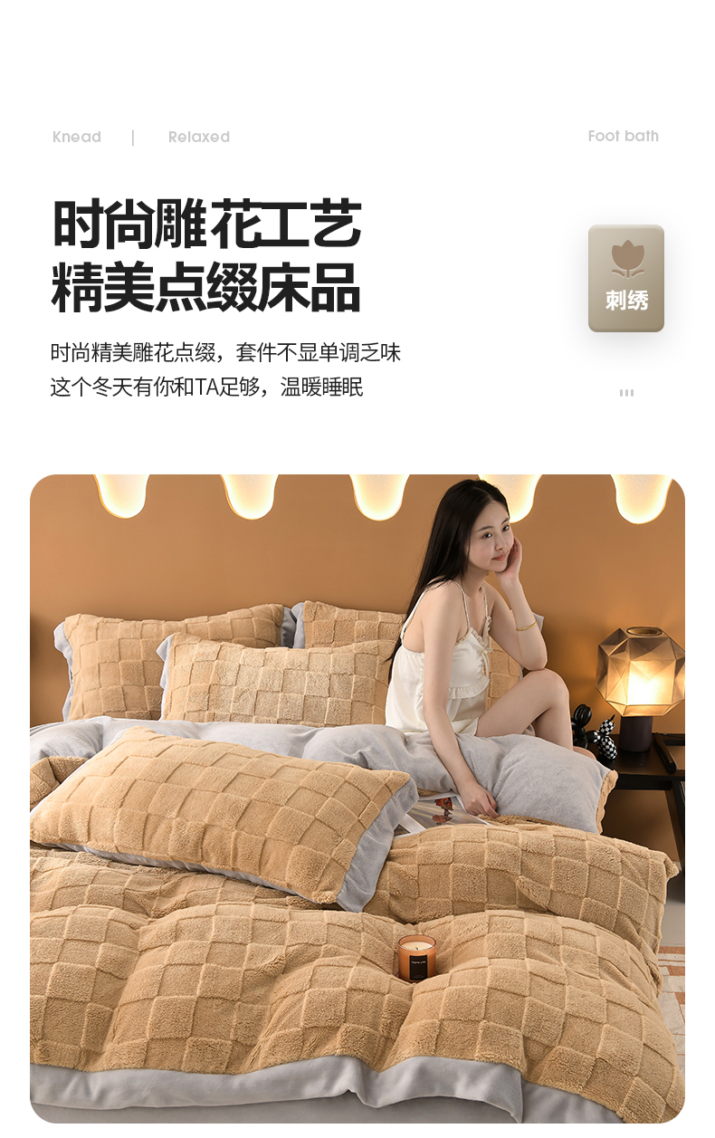 商品名称:澳梵家居 2023新款轻奢款宽边塔芙绒四件套 格调-卡其