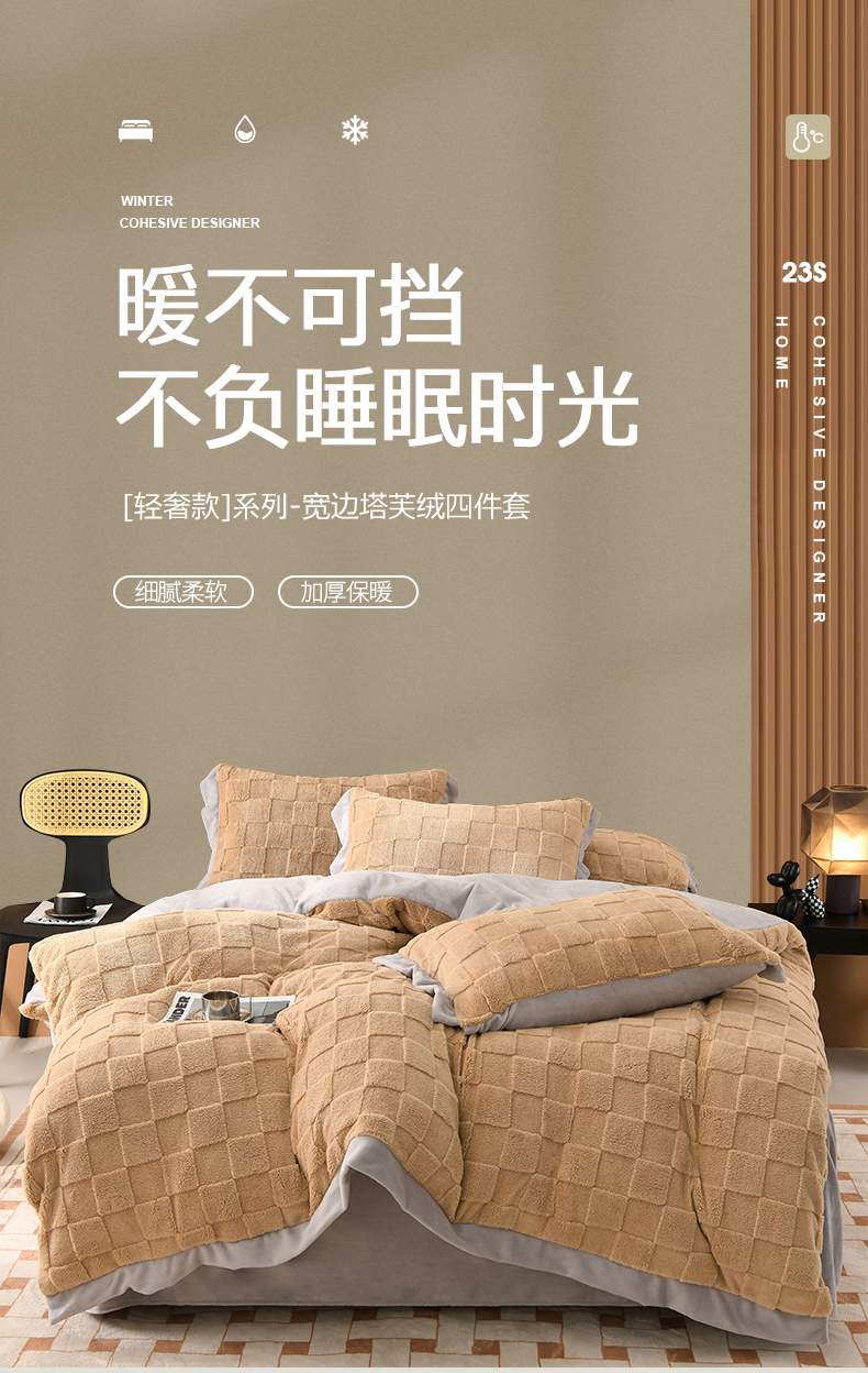 澳梵家居 2023新款轻奢款宽边塔芙绒四件套 格调-卡其