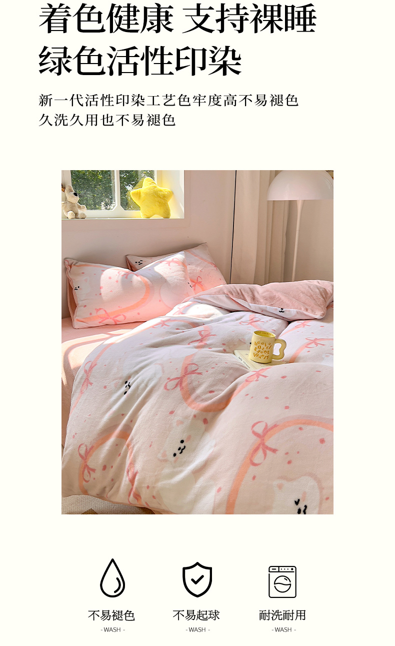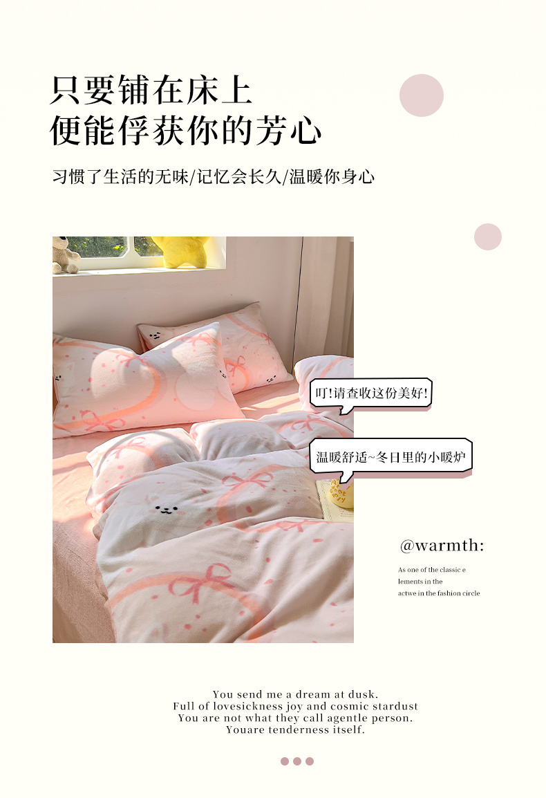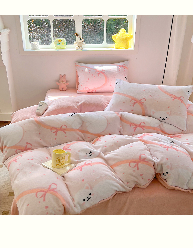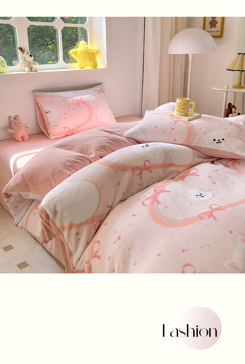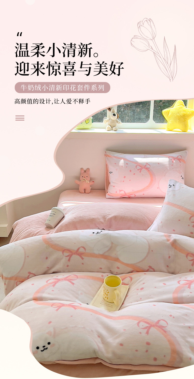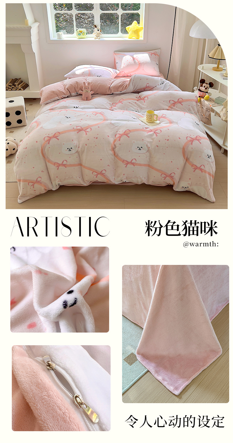 当前位置: 91家纺网 > 商品网购 > 床品套件 > 四件套 > 牛奶绒四件套 > 山茶家纺2023新款高克重印花牛奶绒四件套 粉色猫咪