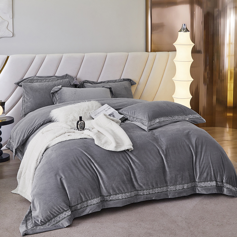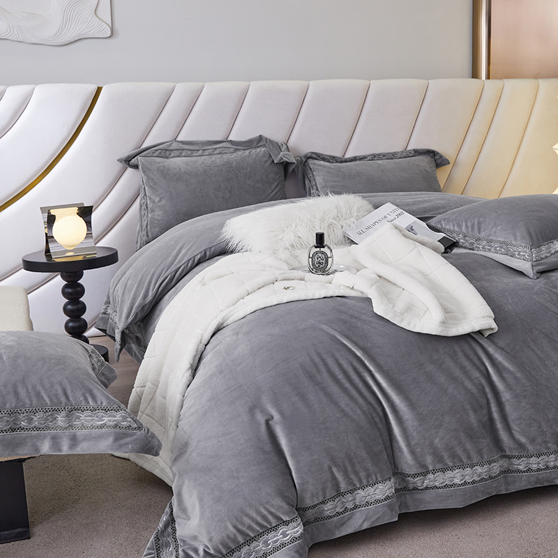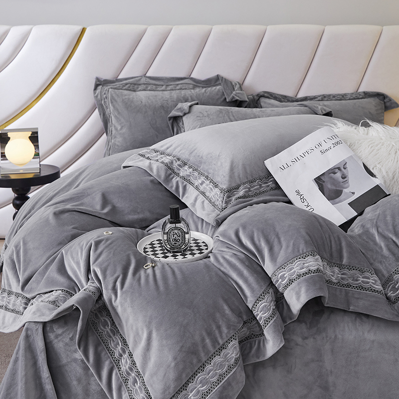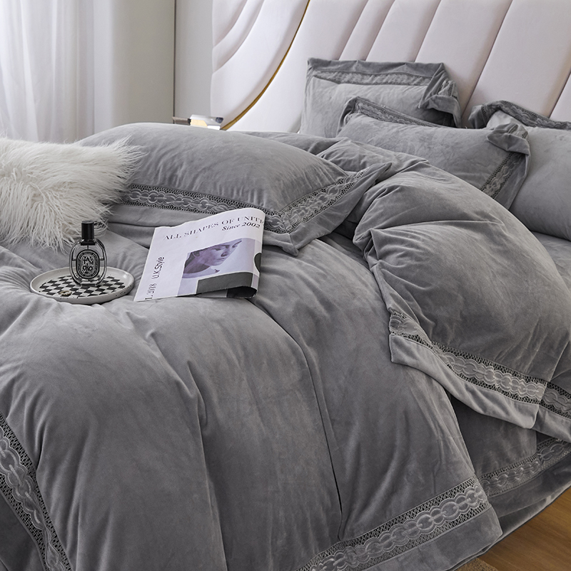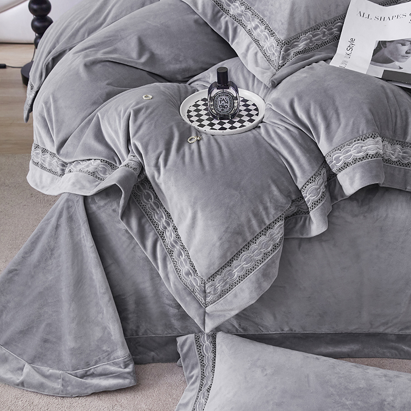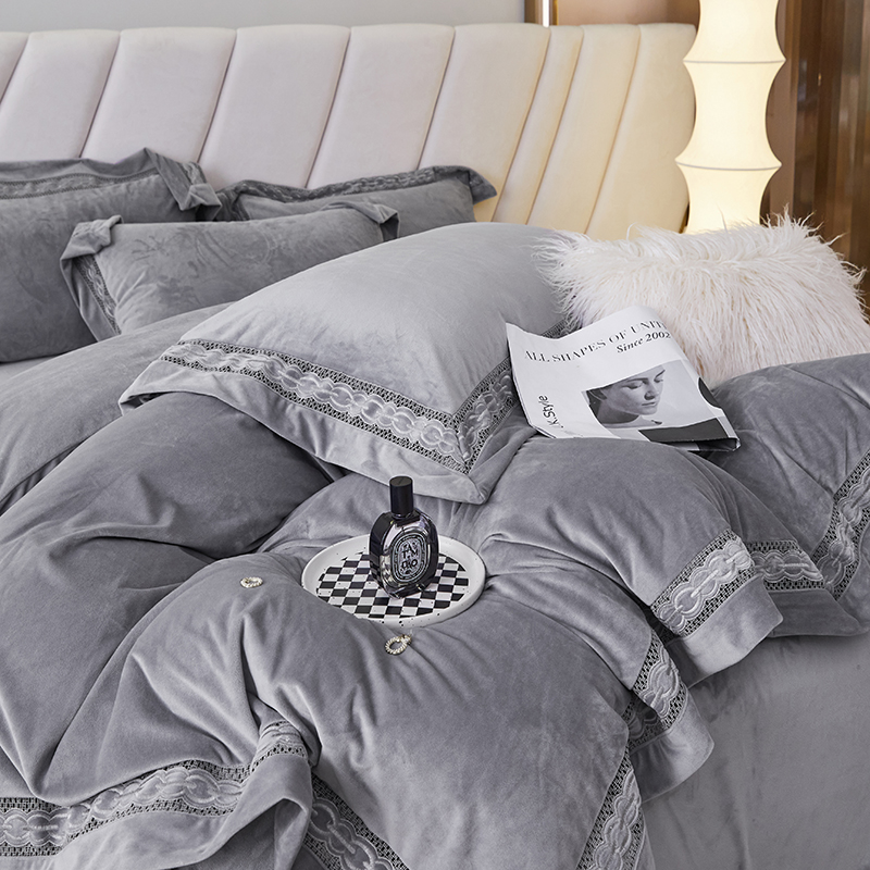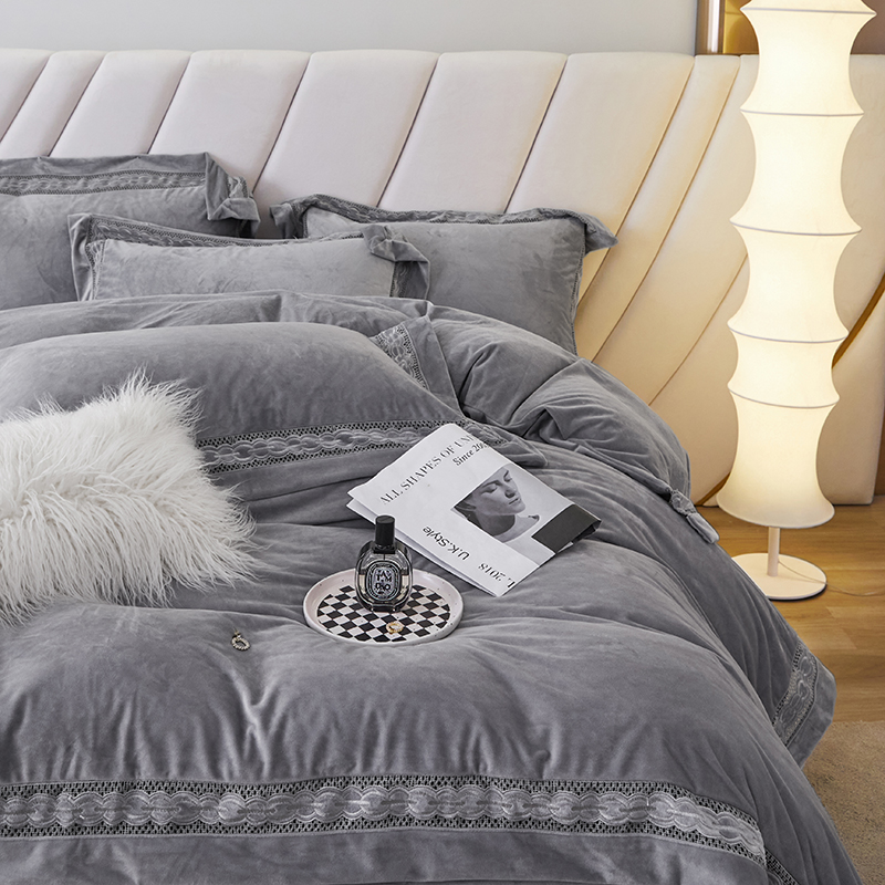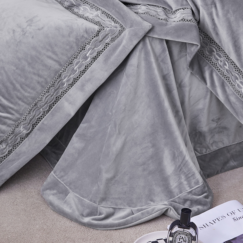 榻尚 2023婴肤绒镂空设计拼边工艺款四件套-佳梦系列 佳梦-灰