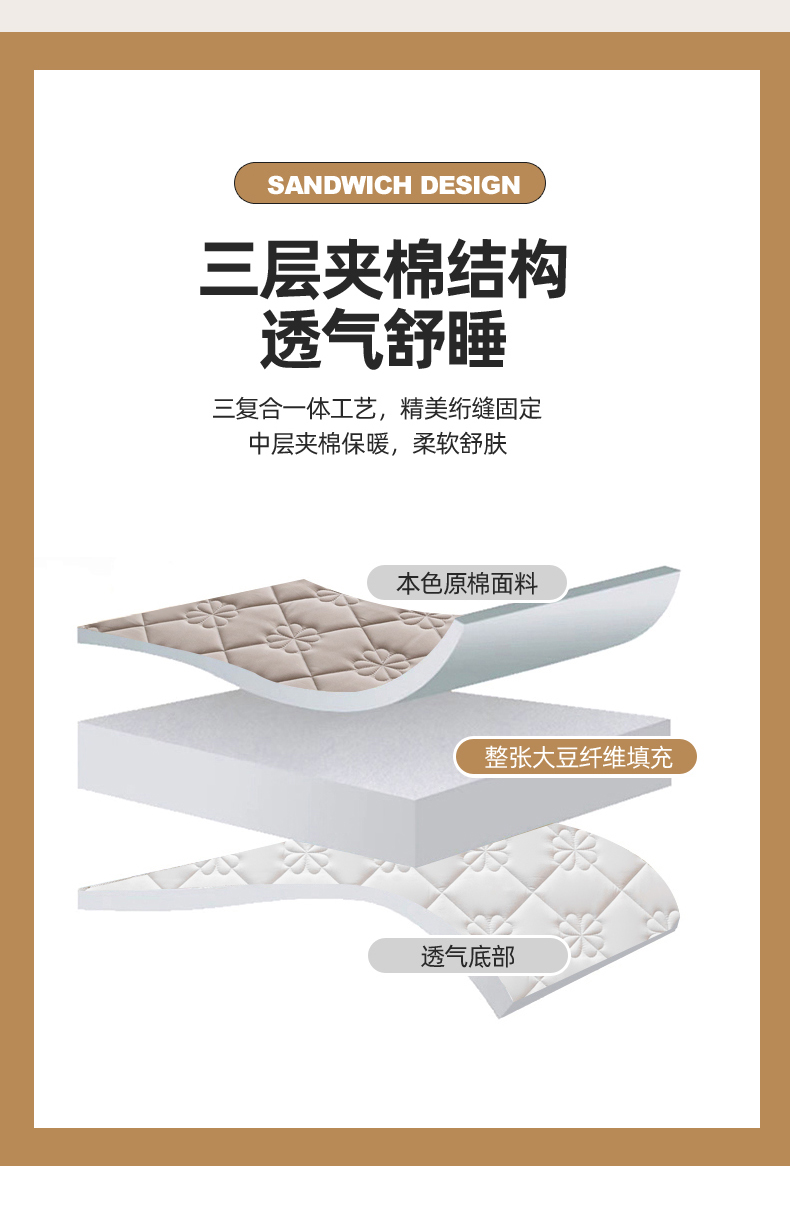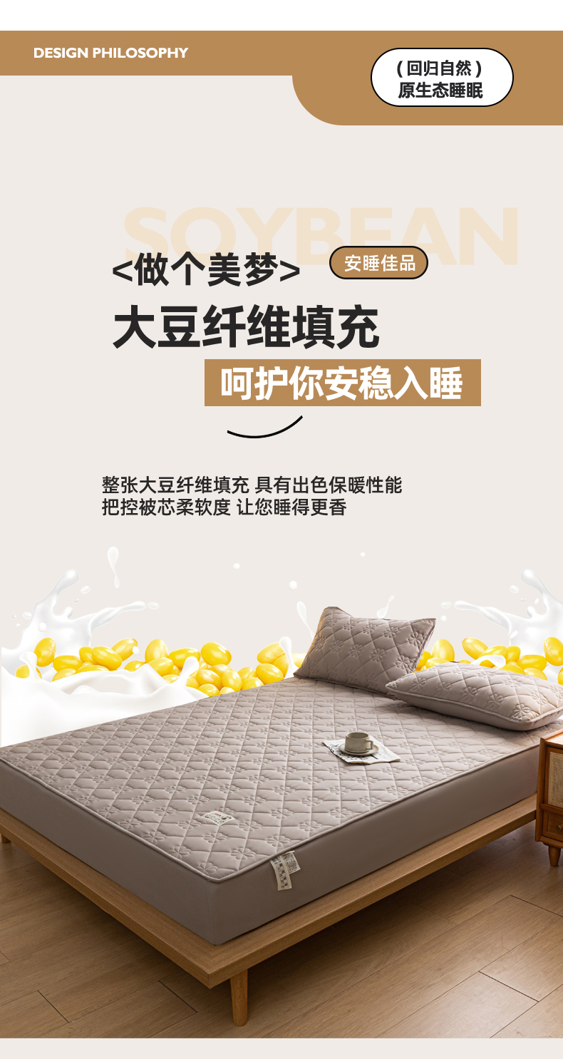 米粒家纺 2023新款A类大豆纤维夹棉床笠系列 幸运花-卡其